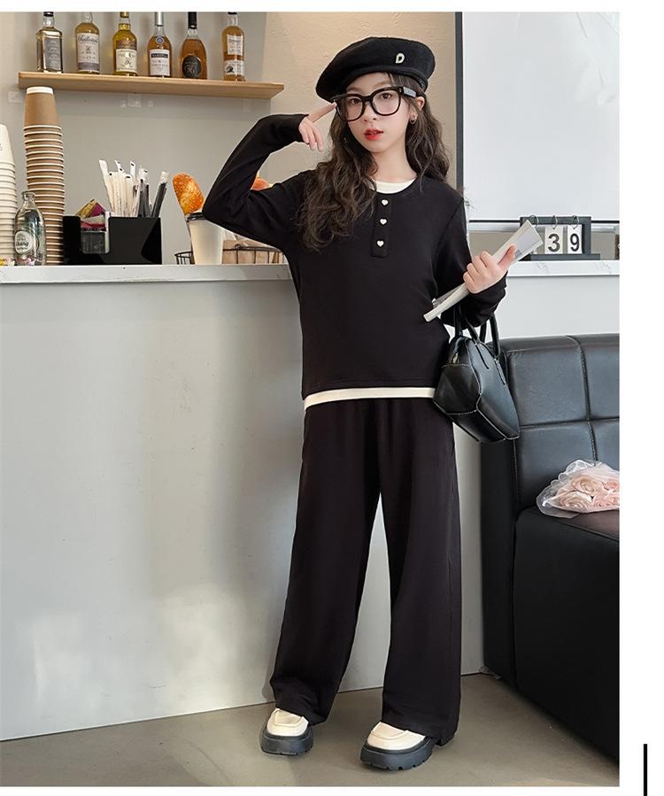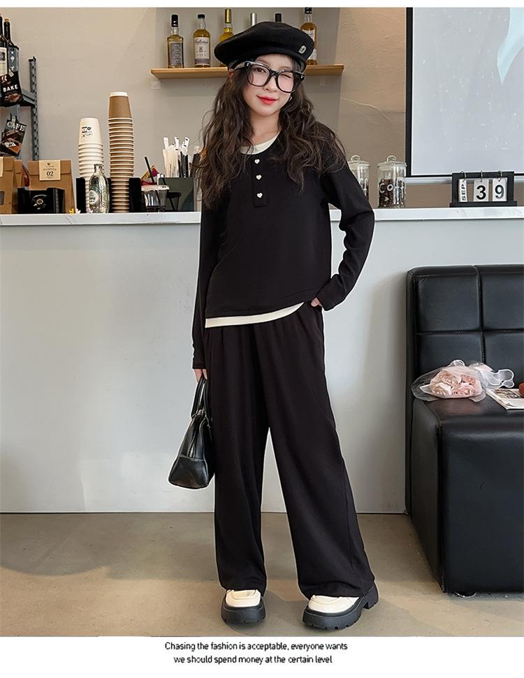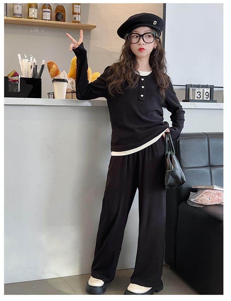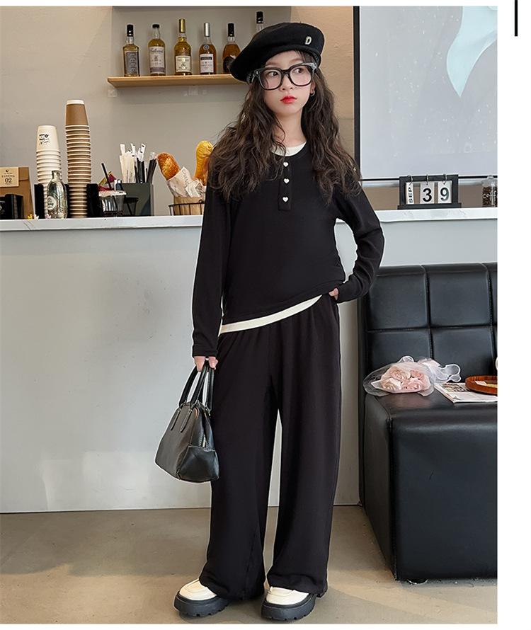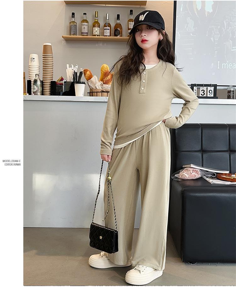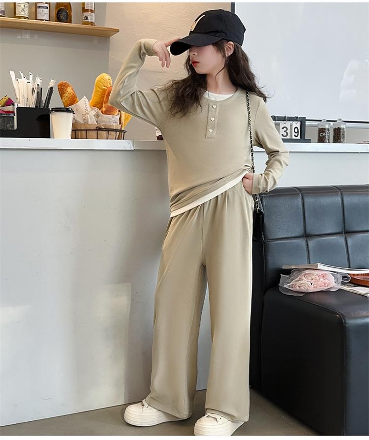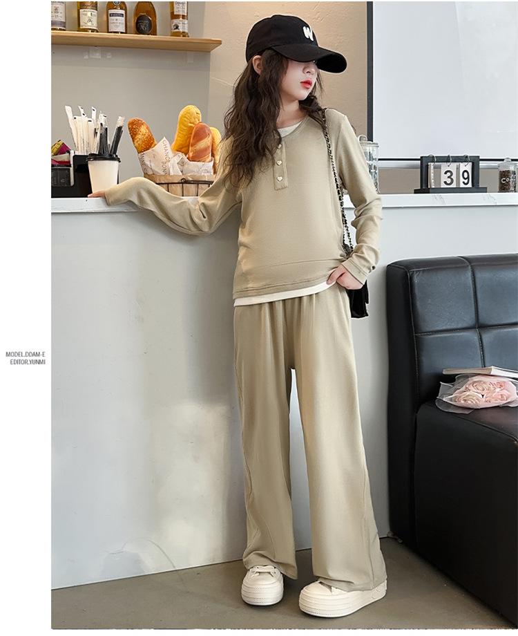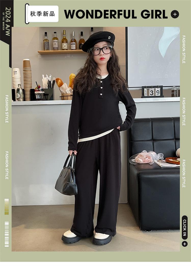 Traje casual de otoño para niñas, primavera y otoño 2024, estilo occidental, conjunto de dos piezas con pantalón ancho y parte superior falsa para niñas