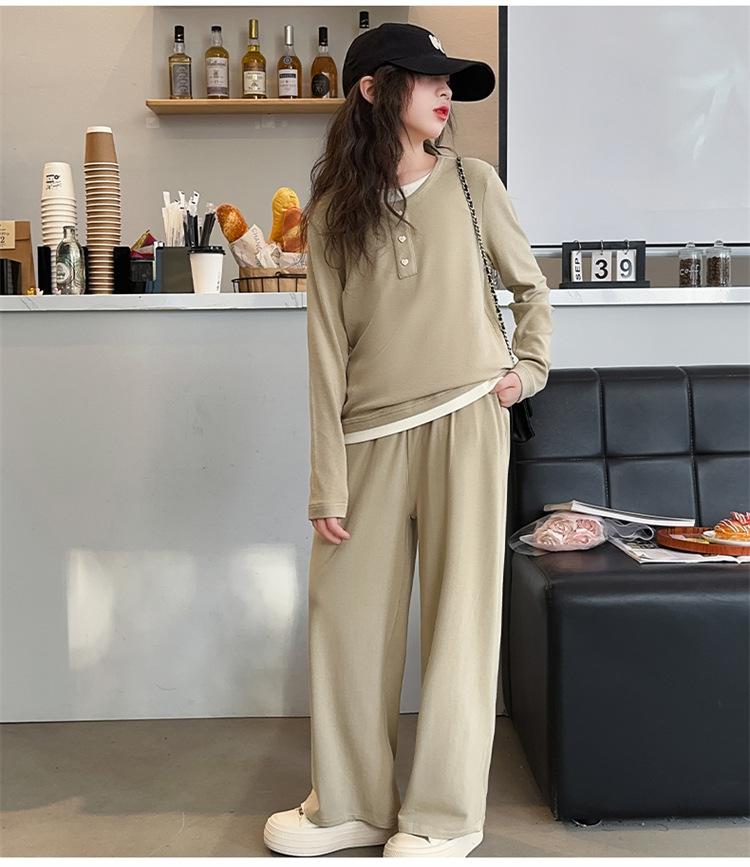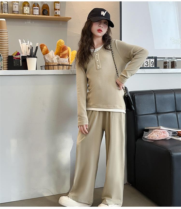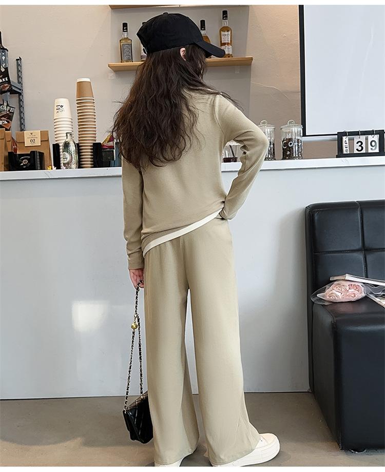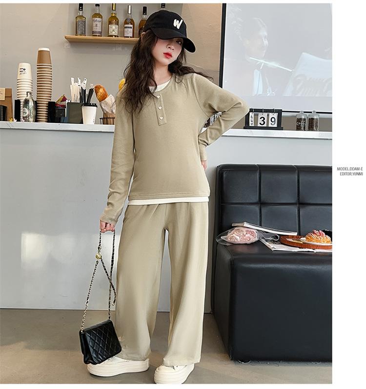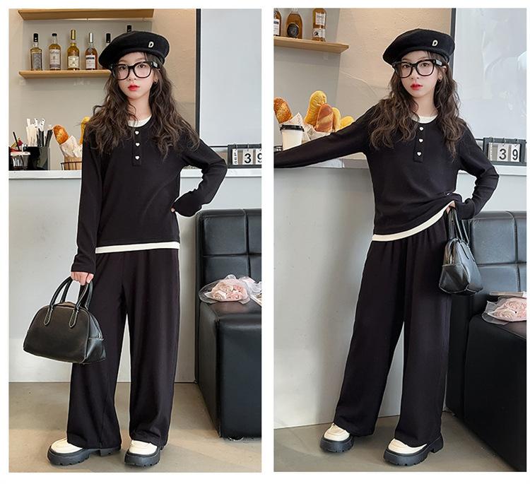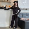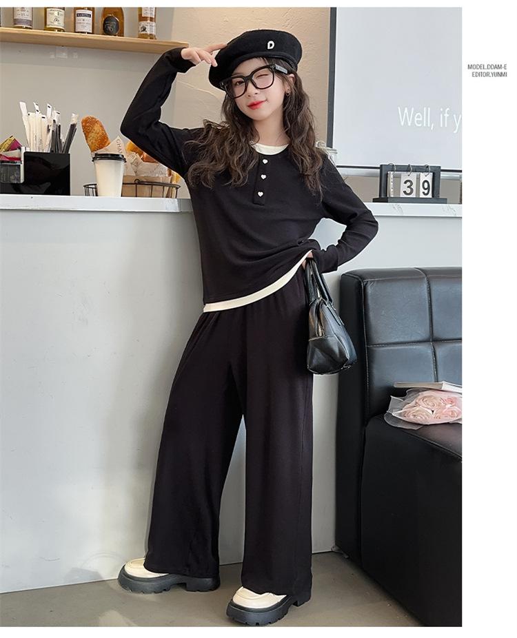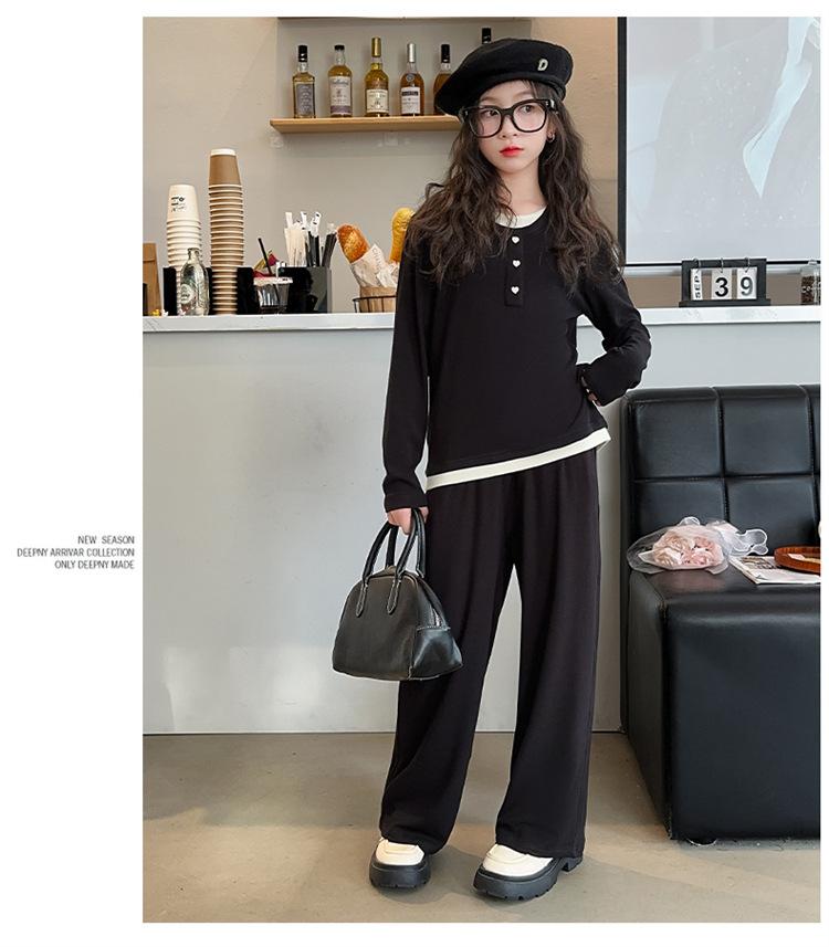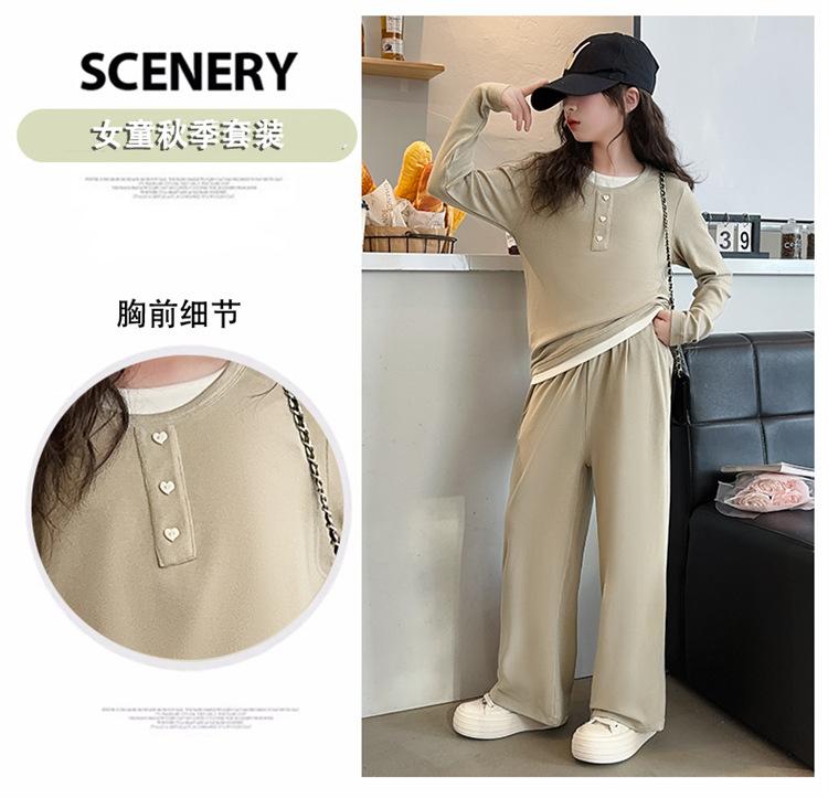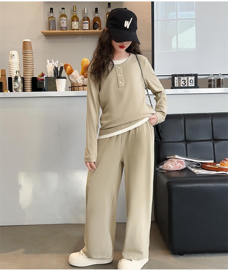 Traje casual de otoño para niñas, primavera y otoño 2024, estilo occidental, conjunto de dos piezas con pantalón ancho y parte superior falsa para niñas