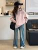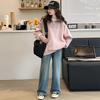 Traje para niña Primavera y Otoño 2025 Nuevo Estilo para Niños Medianos y Grandes Suéter para Niña Pantalones Rectos de Mezclilla Holgados Conjunto de Dos Piezas