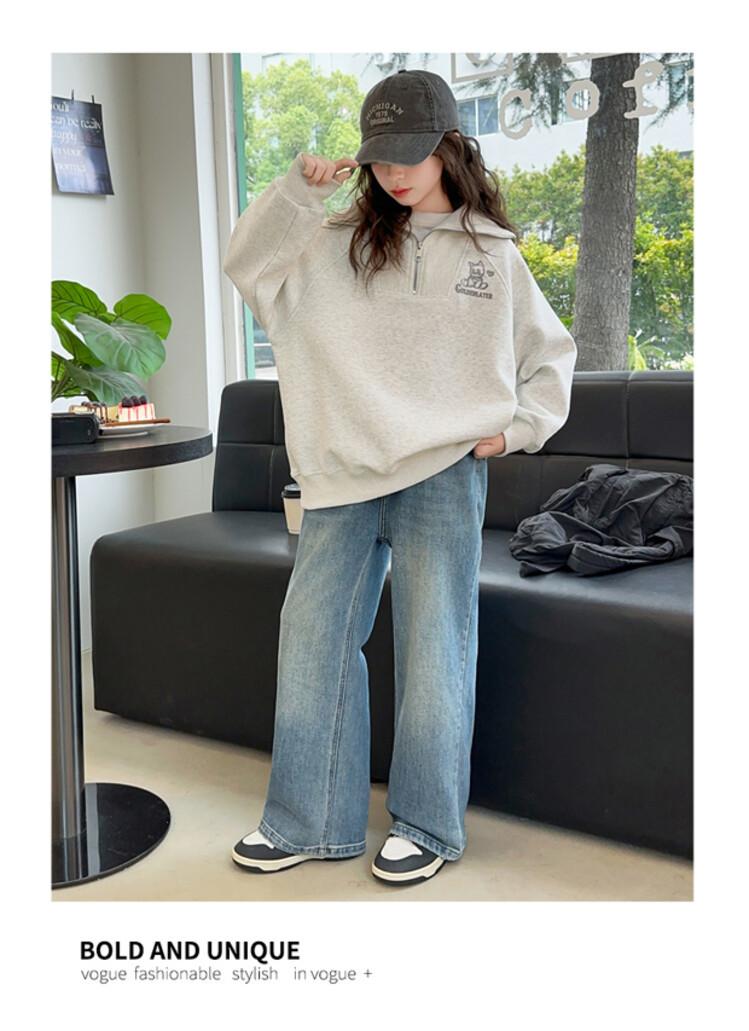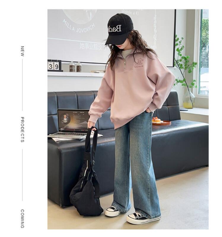 Compra Traje para niña Primavera y Otoño 2025 Nuevo Estilo para Niños Medianos y Grandes Suéter para Niña Pantalones Rectos de Mezclilla Holgados Conjunto de Dos Piezas al por mayor en Joom.pro