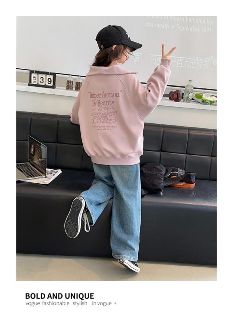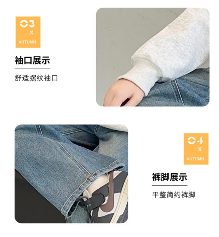 Suit [pink sweatshirt + light blue jeans], Suit [flower gray sweatshirt + light blue jeans], Pink sweatshirt, ...