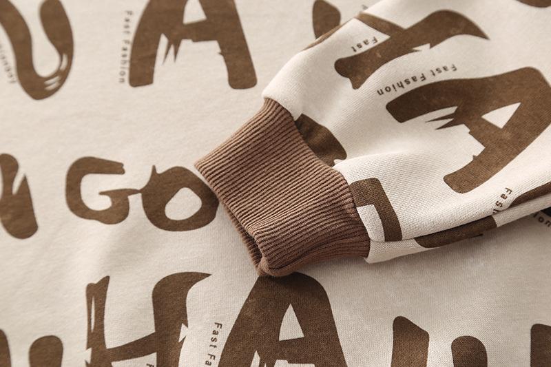 Long sleeve full print letters suit green, Long sleeve full print letter suit beige