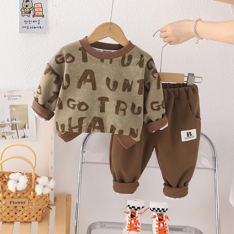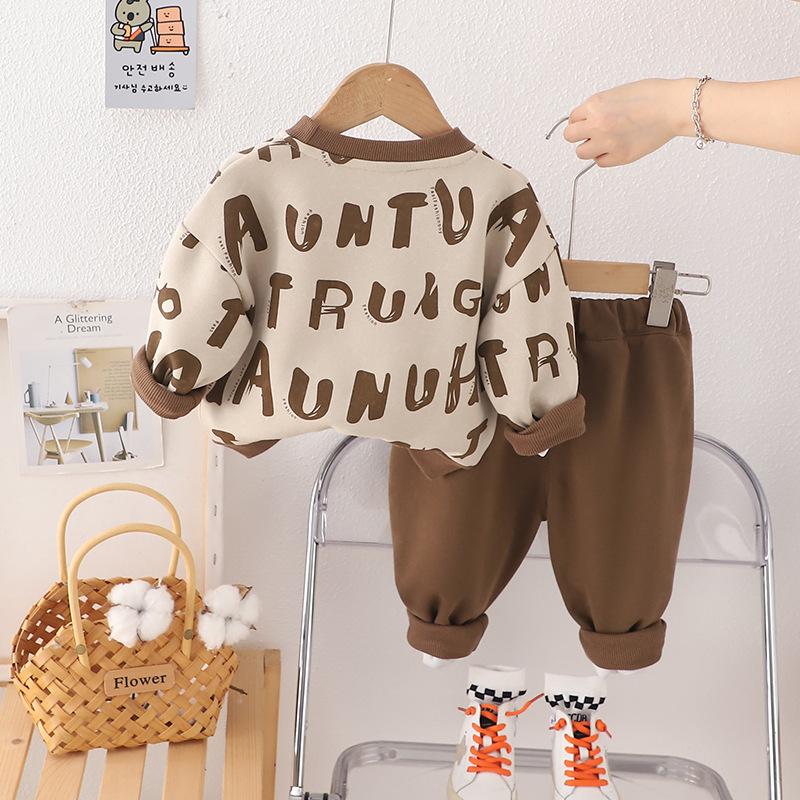 Traje de primavera y otoño para niño 2024, nuevo conjunto de dos piezas de sudadera de manga larga de estilo occidental para niño y bebé.