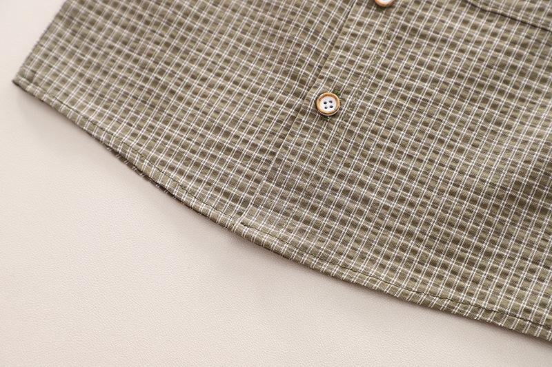 Brown plaid shirt vest long-sleeved three-piece suit, Black plaid shirt and vest long-sleeved three-piece suit