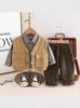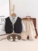 Traje de primavera y otoño de estilo extranjero para niños 2024, nueva ropa de otoño para bebés, ropa para bebés y niños, chaleco atractivo, marea de tres piezas