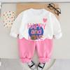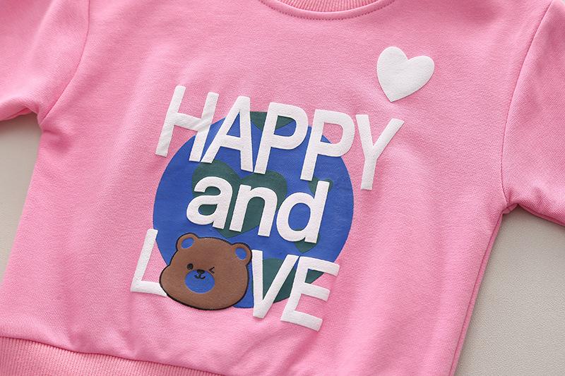 pink Happy Bear Long Sleeve Two-Piece Set, White Happy Bear Long Sleeve Two-piece Set