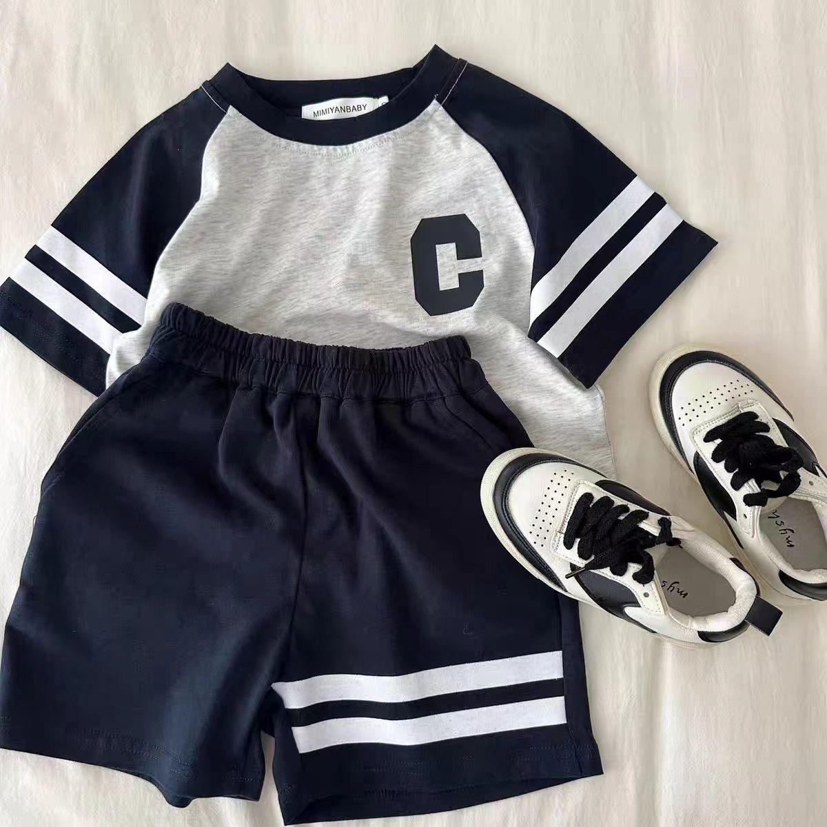 Compra Conjunto de Shorts de Manga Corta para Niños 2025 Verano Nuevo Estilo Niños y Niñas Empalmado Bebé Algodón Puro Camiseta Deportiva Conjunto de Dos Piezas al por mayor en Joom.pro