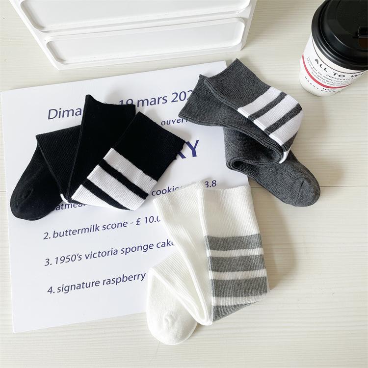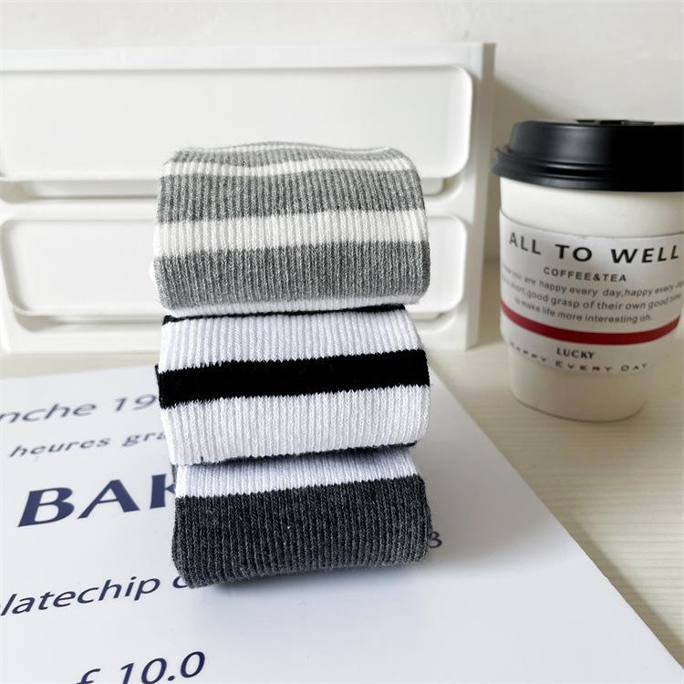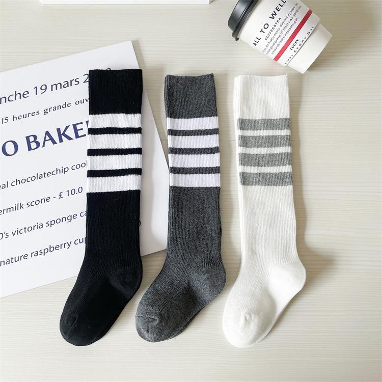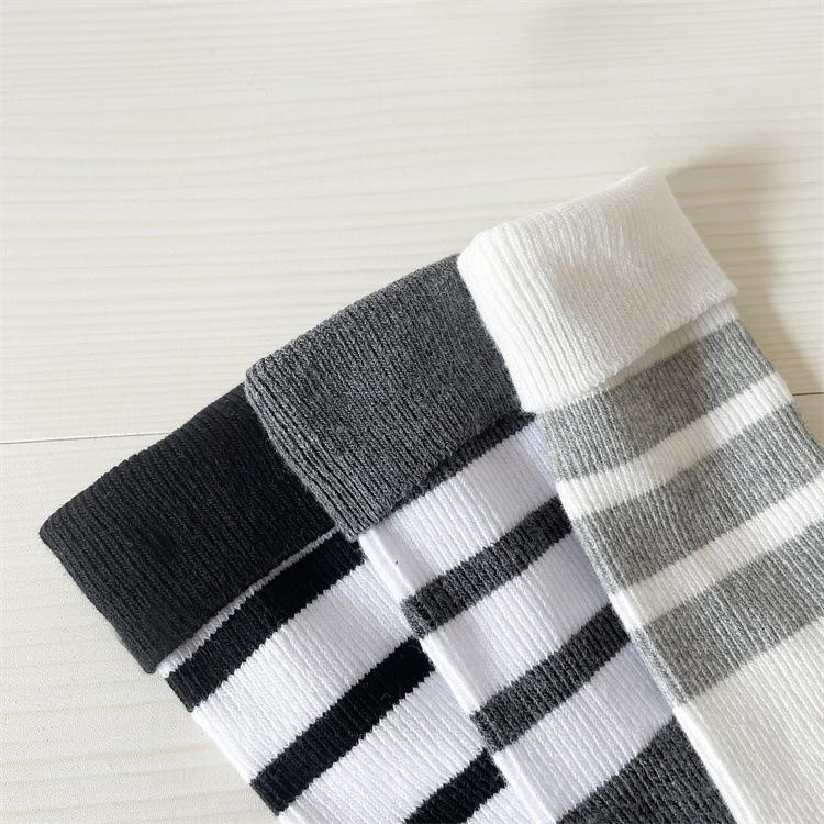 2024 Otoño Nuevos Calcetines para Niños Venta al por Mayor Calcetines Asimétricos para Pie Izquierdo y Derecho para Bebé Calcetines Rayados de Media Caña Calcetines de Moda