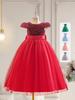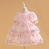 Vestido de princesa para niña, nuevo, con mangas abullonadas, estampado de malla y pastel, de hilo abullonado, para niña de las flores