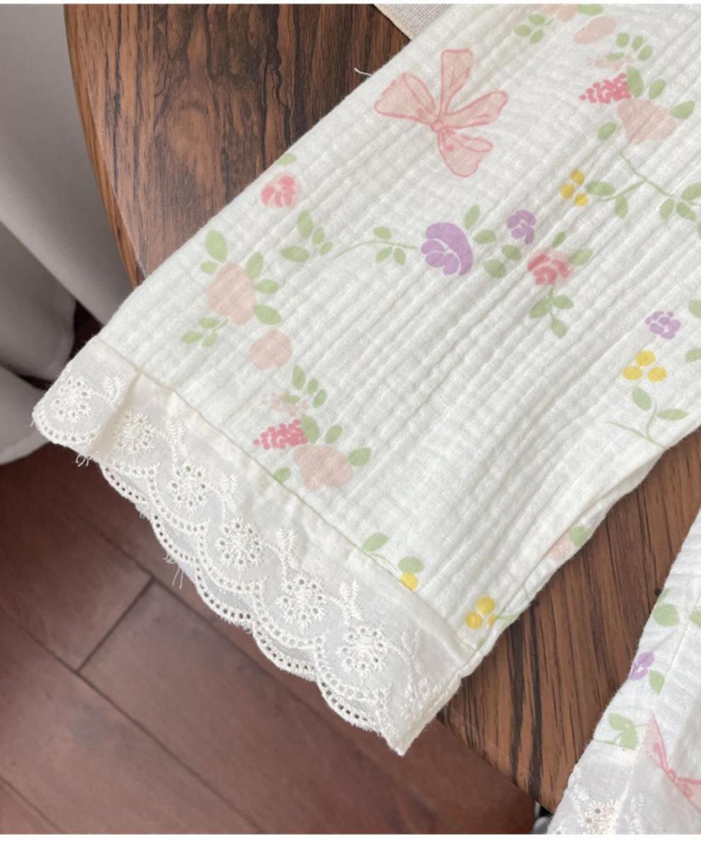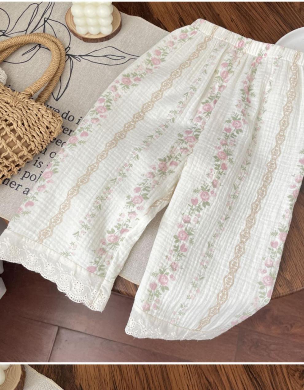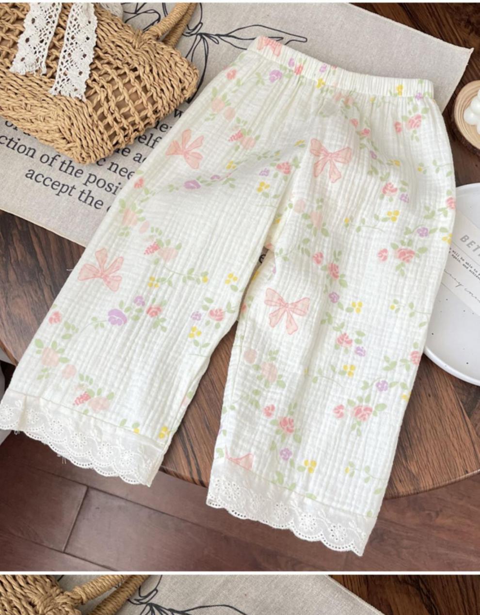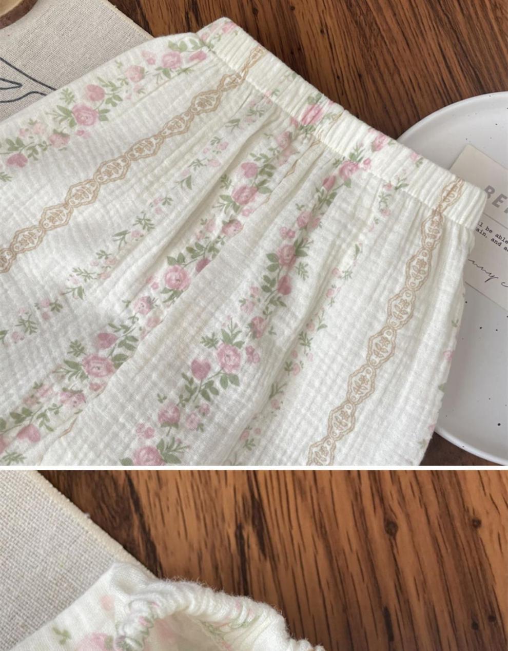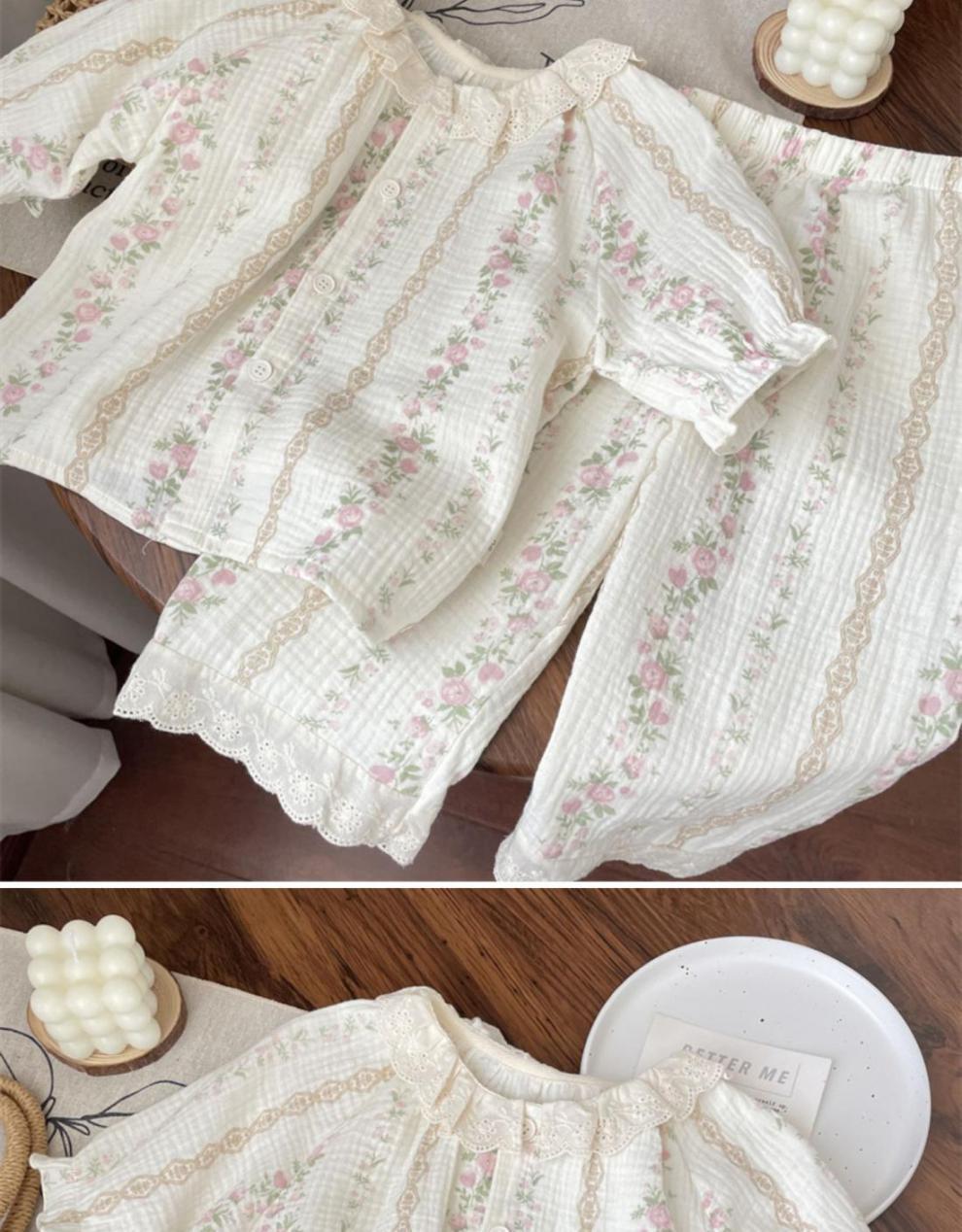 Traje de Ropa para el Hogar de Verano para Niñas Estilo Occidental para Bebé Moda Infantil Estilo Coreano Dulce Floral Manga Corta Pantalones Pijama