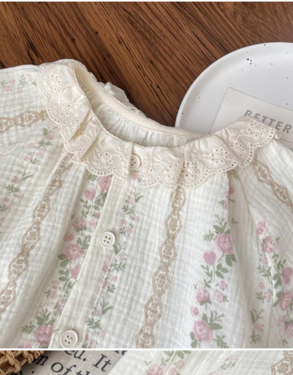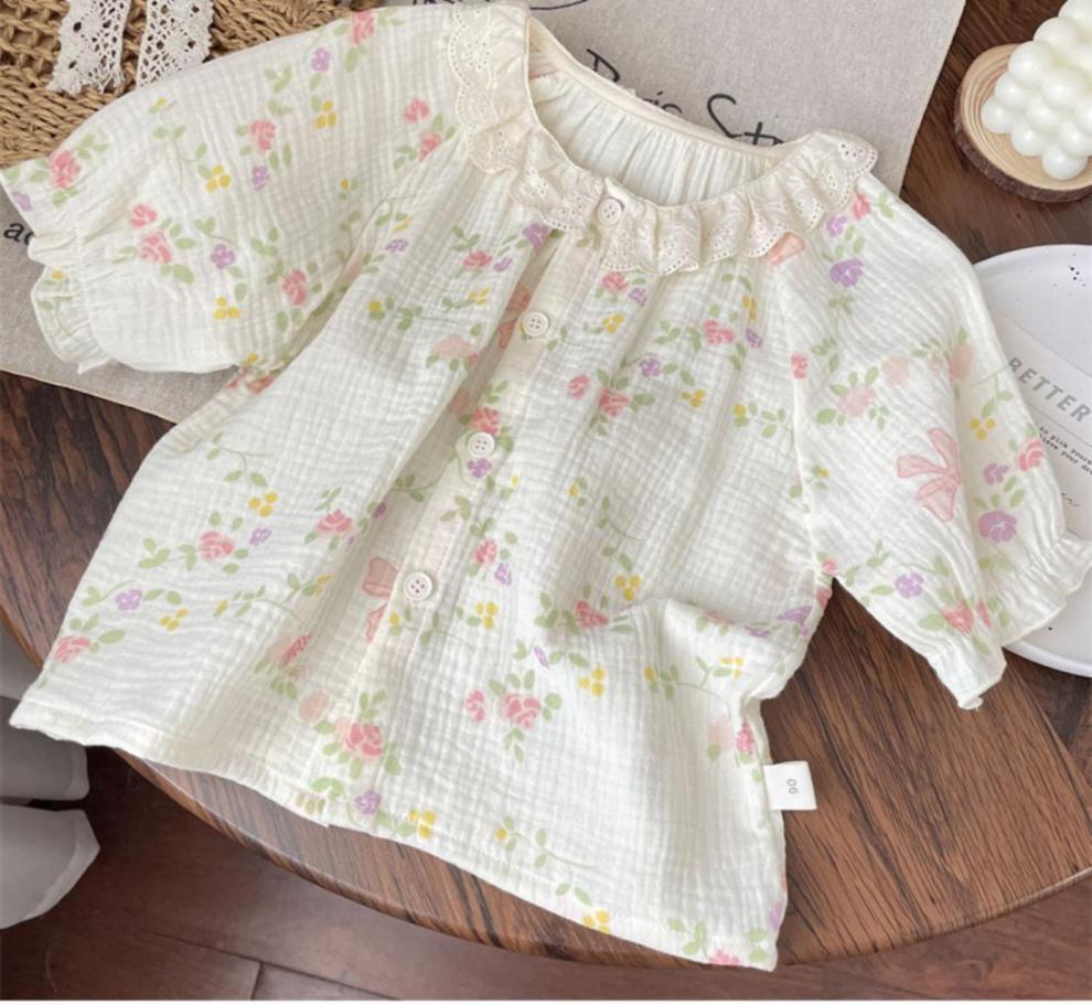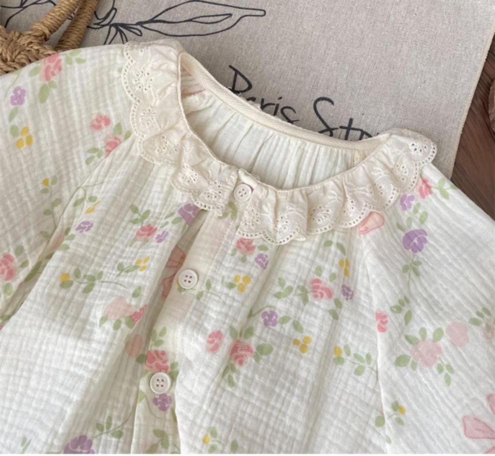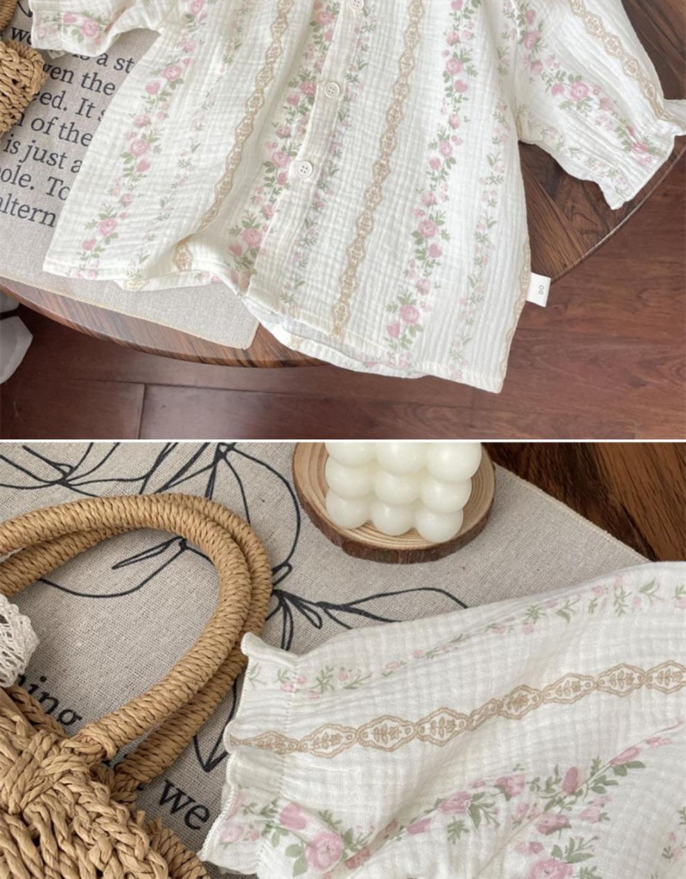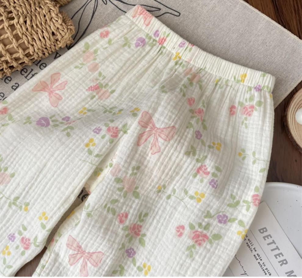 Traje de Ropa para el Hogar de Verano para Niñas Estilo Occidental para Bebé Moda Infantil Estilo Coreano Dulce Floral Manga Corta Pantalones Pijama