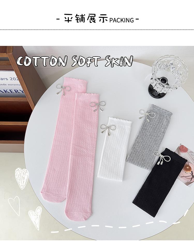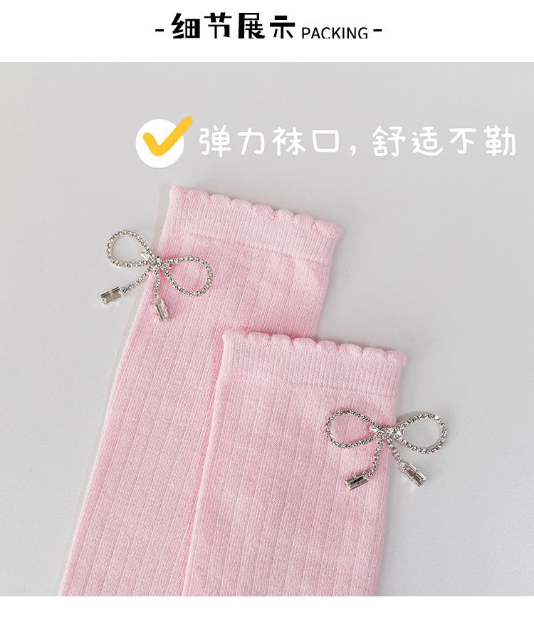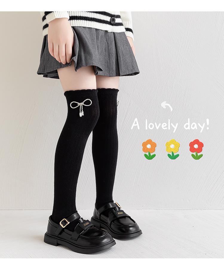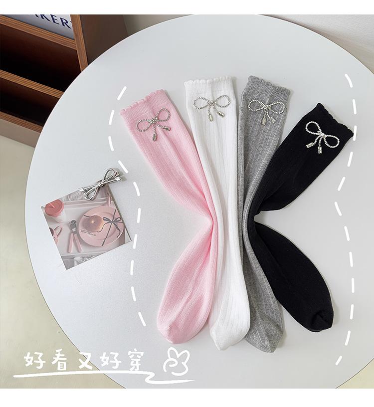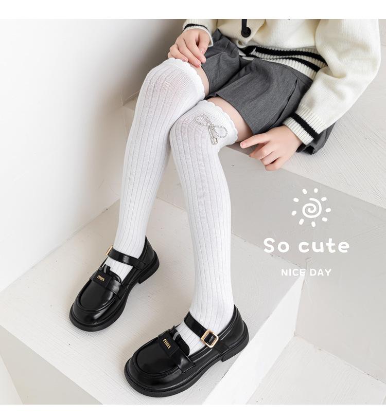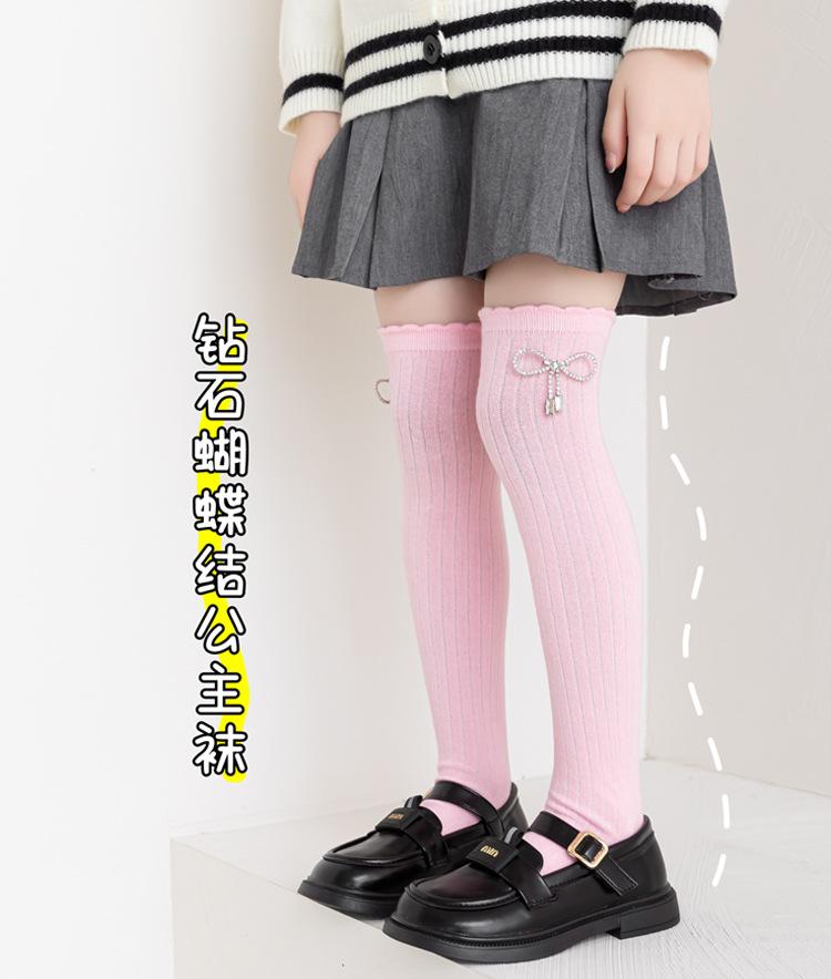 Medias para niños, calcetines de algodón de primavera y otoño por encima de la rodilla, calcetines de princesa con lazo de diamantes de imitación para niñas, medias altas para bebés con viento