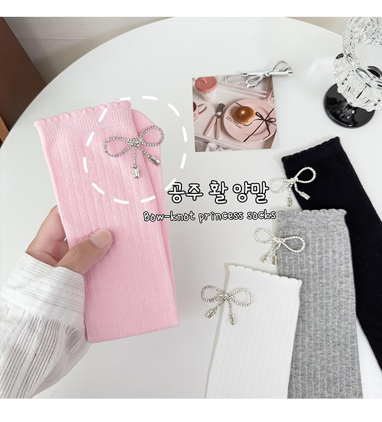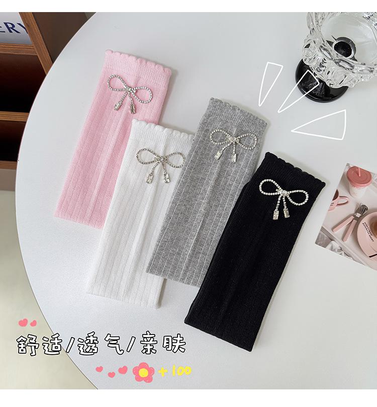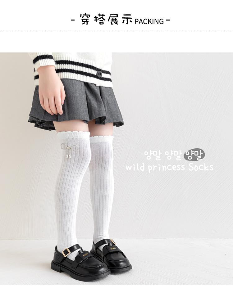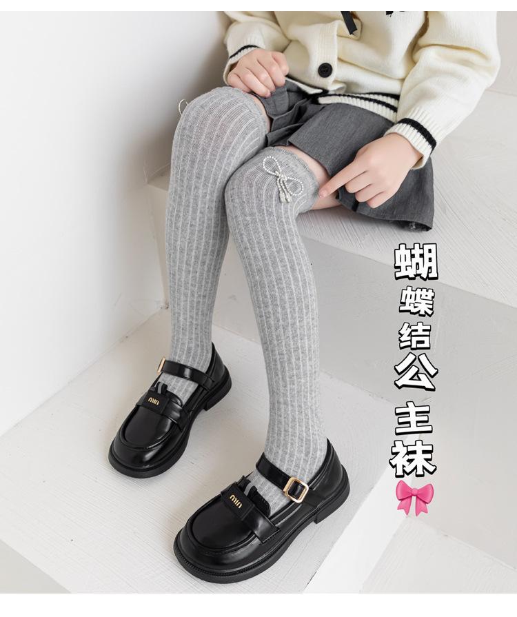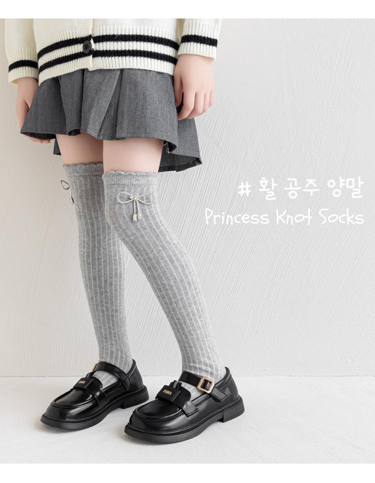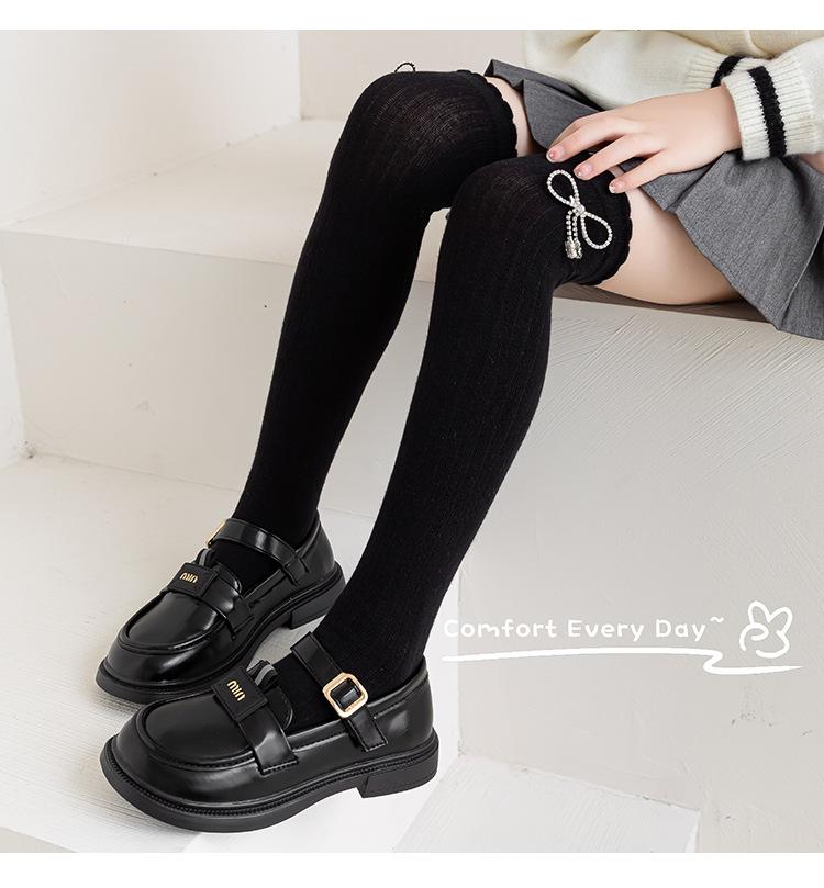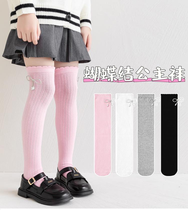 Medias para niños, calcetines de algodón de primavera y otoño por encima de la rodilla, calcetines de princesa con lazo de diamantes de imitación para niñas, medias altas para bebés con viento