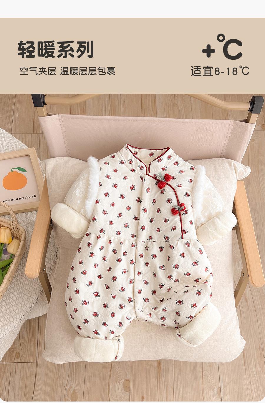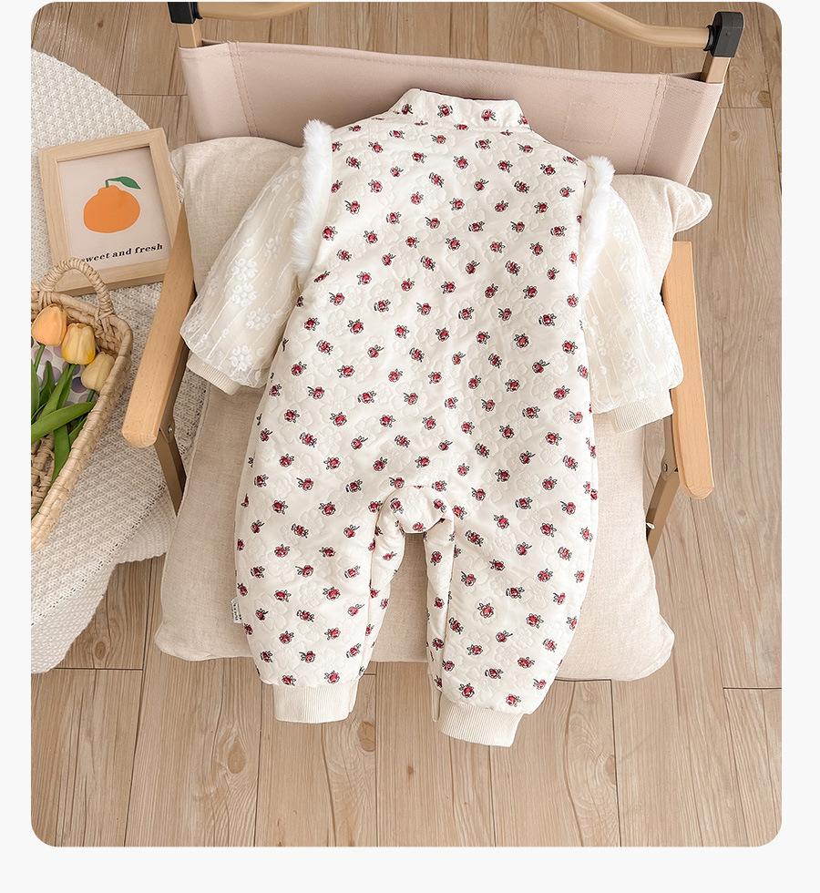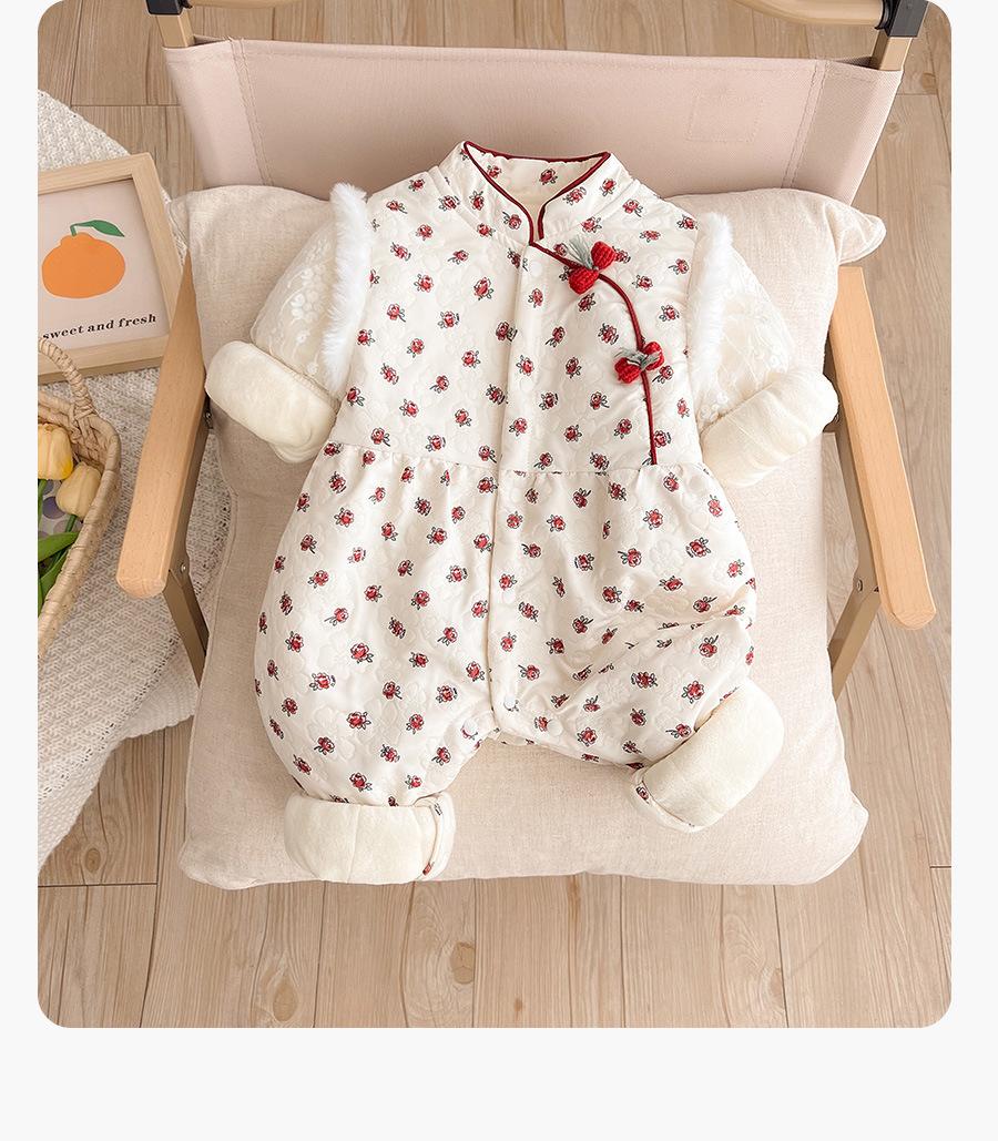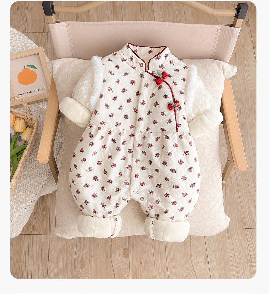 Ropa de Bebé Otoño e Invierno Mameluco acolchado de algodón con abrigo de terciopelo Lindo Bebé Niña Estilo Chino Ropa de Principios de Invierno para Salir para Sostener Ropa