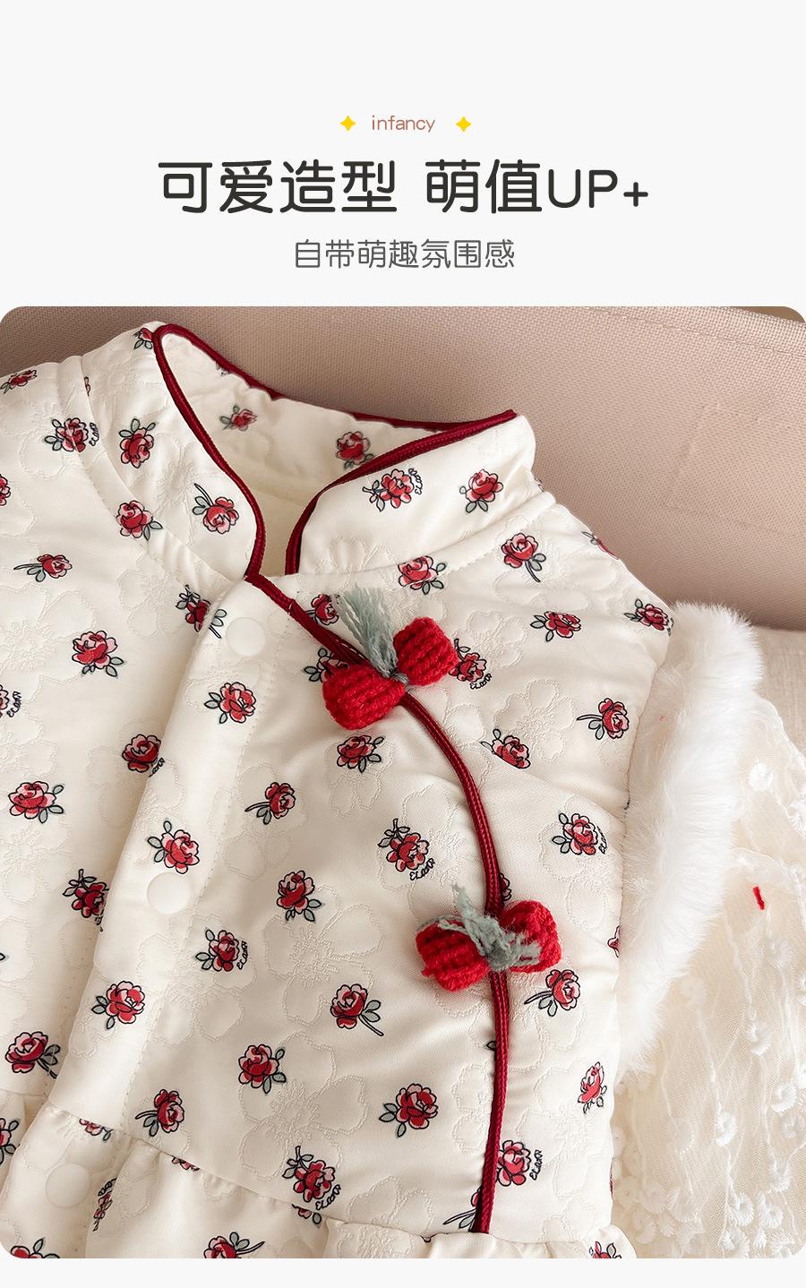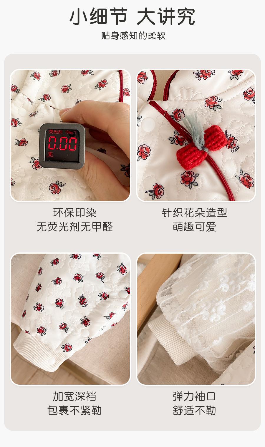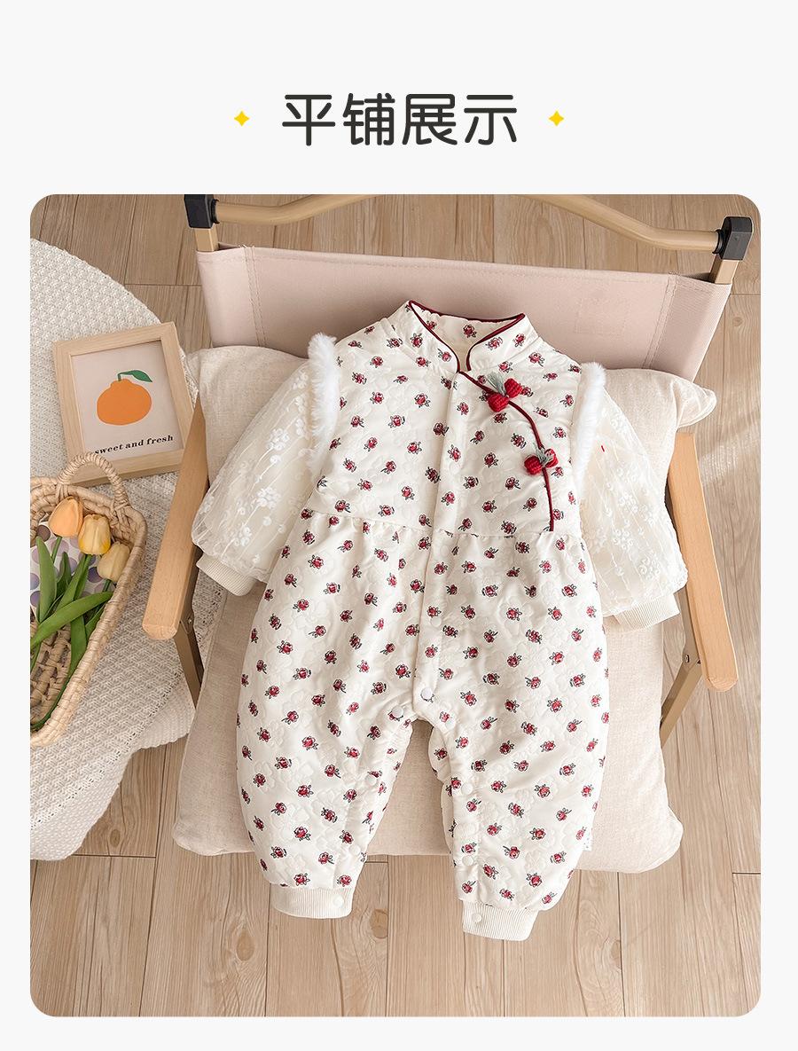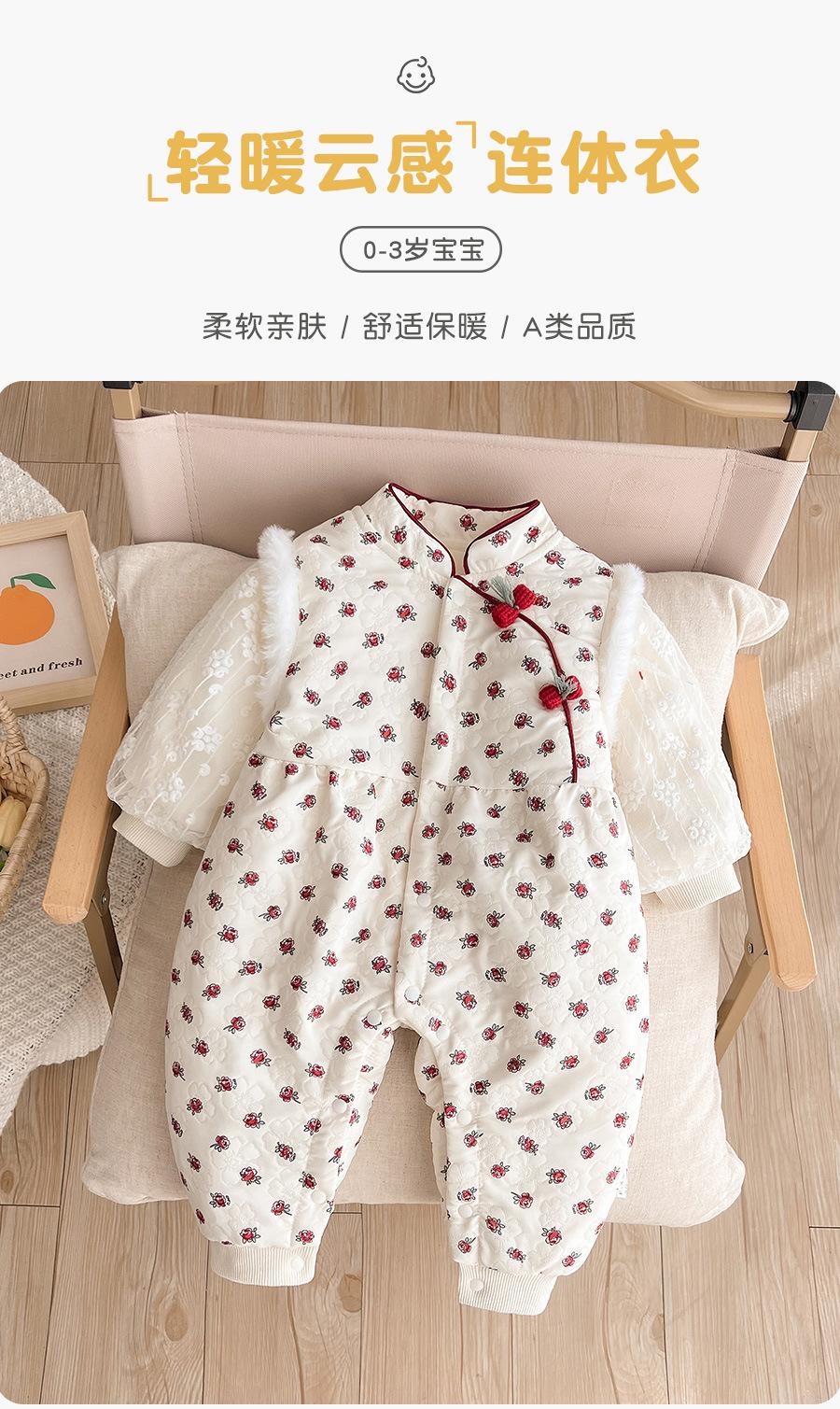 Ropa de Bebé Otoño e Invierno Mameluco acolchado de algodón con abrigo de terciopelo Lindo Bebé Niña Estilo Chino Ropa de Principios de Invierno para Salir para Sostener Ropa