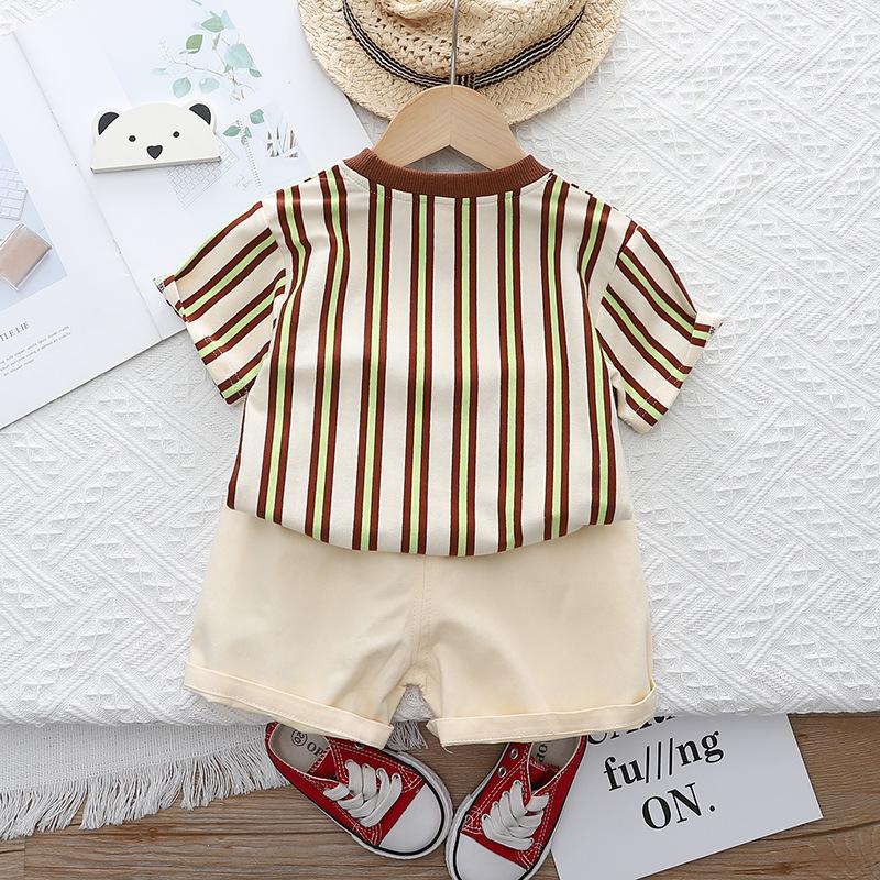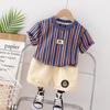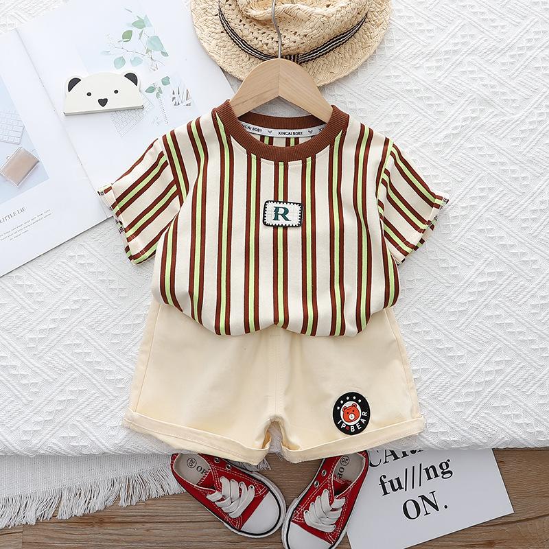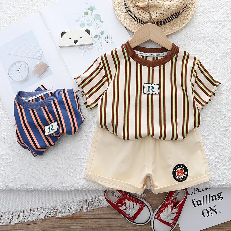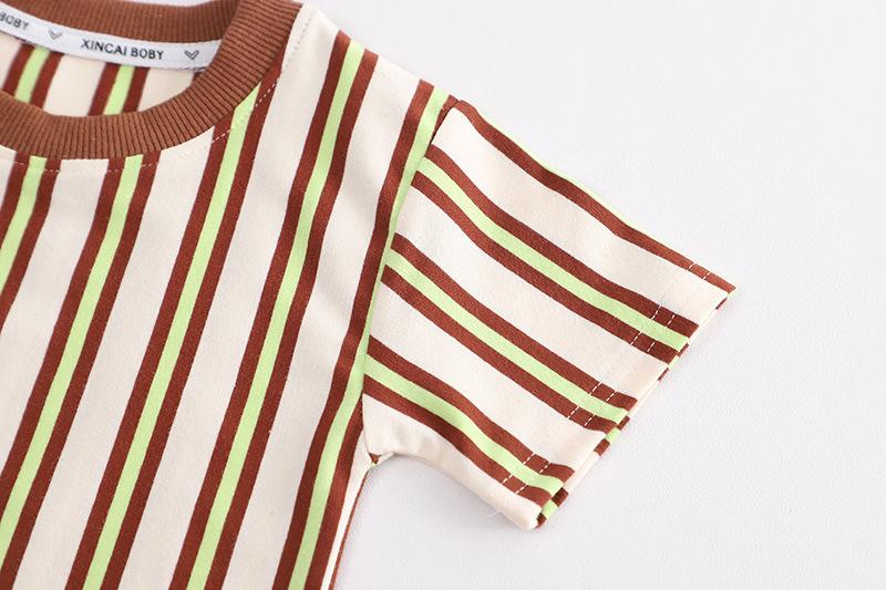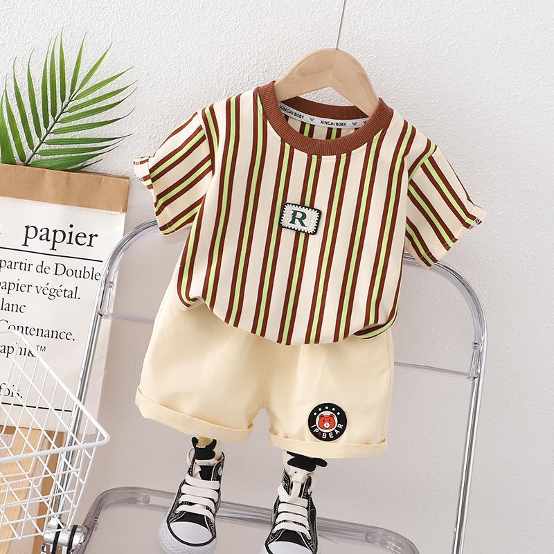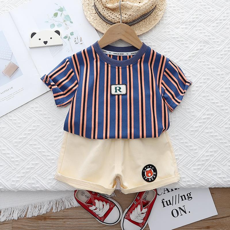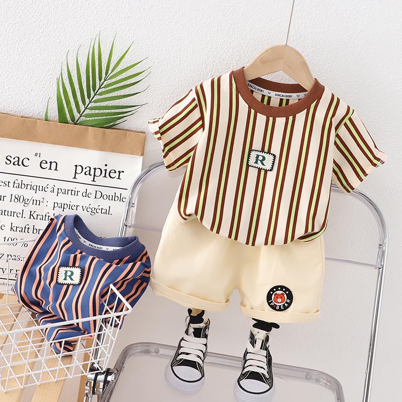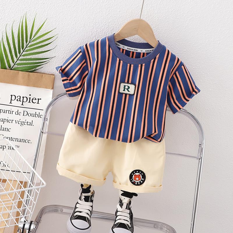 Suéter de cuello redondo de algodón para niños, traje de manga corta, ropa informal de dos piezas para niños, verano 2023