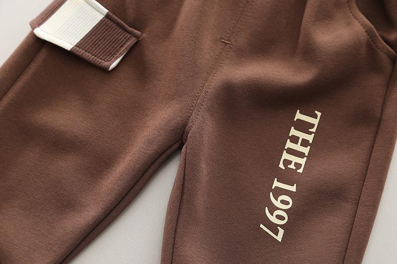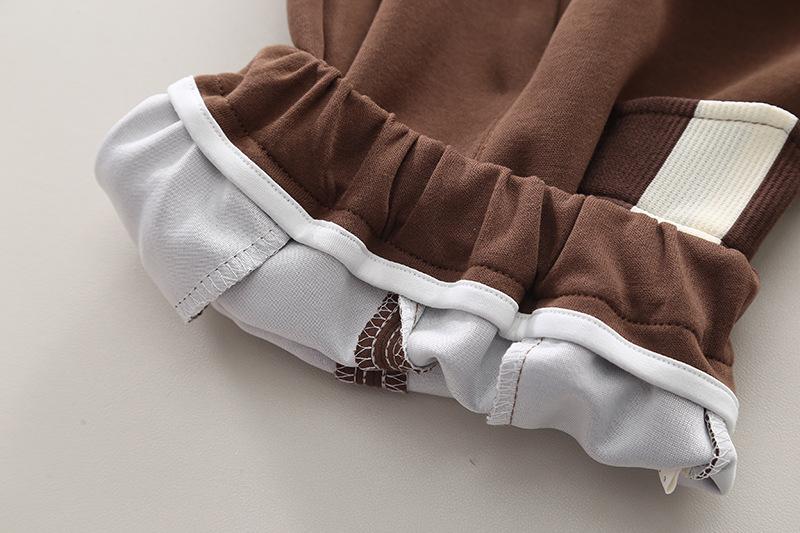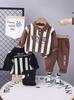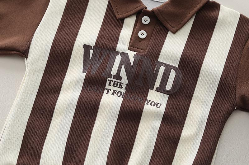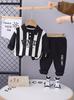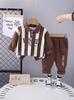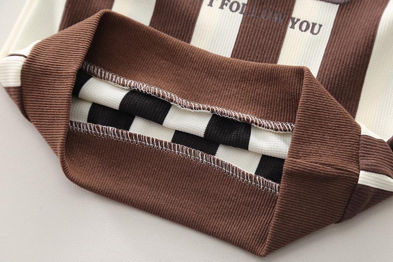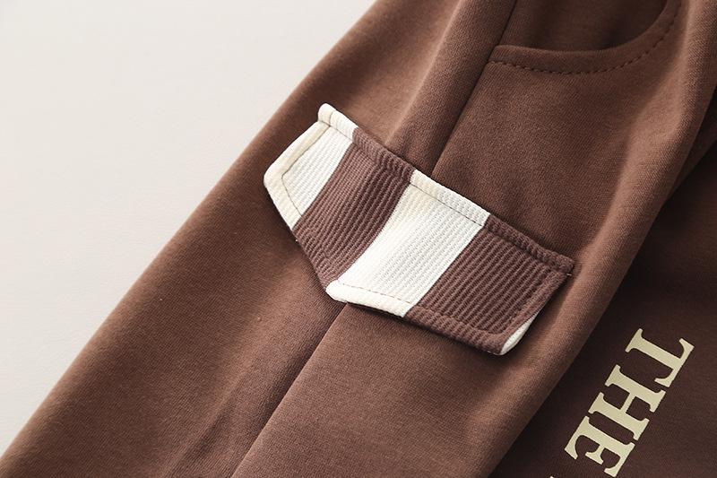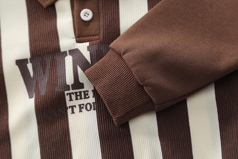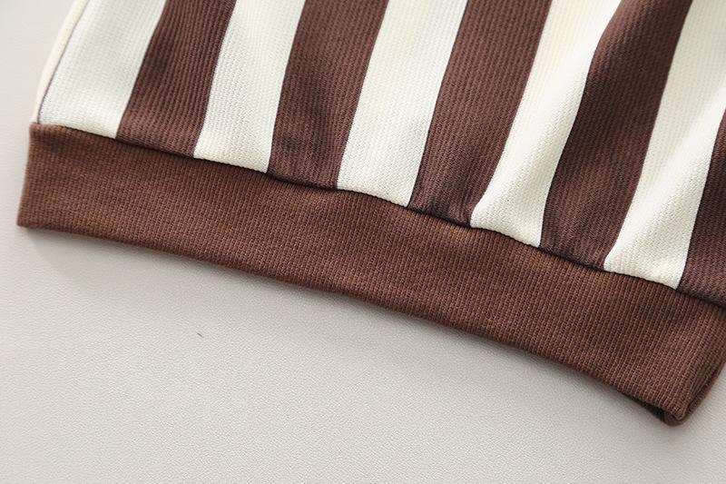 Brown vertical striped letter long-sleeved two-piece set, Black vertical striped letter long-sleeved two-piece set