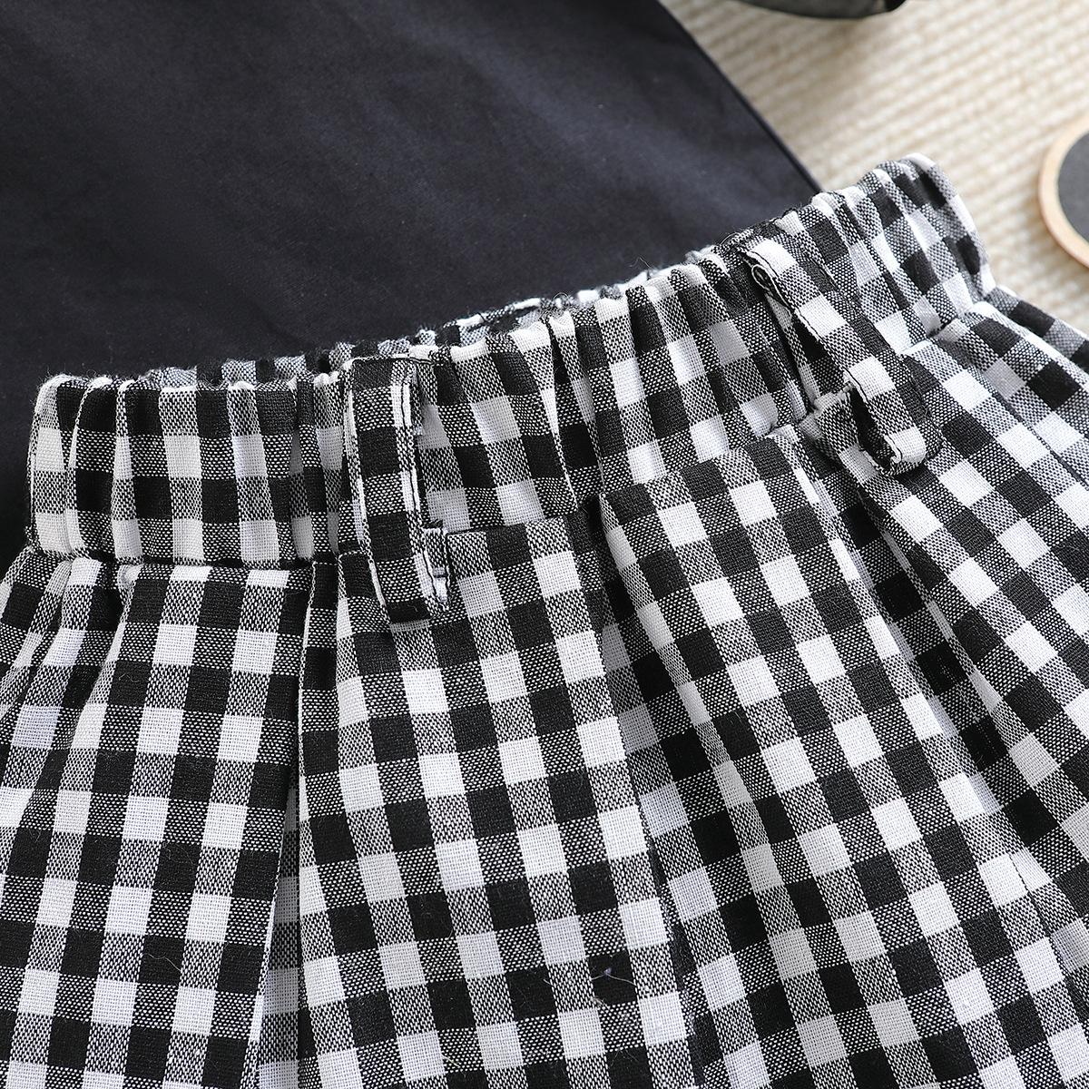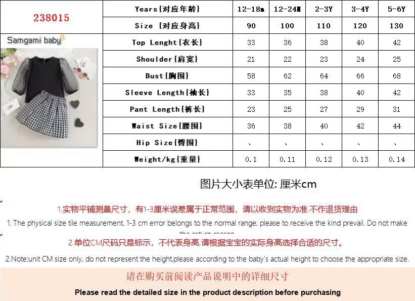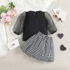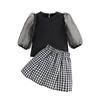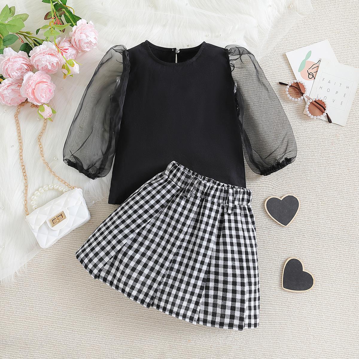 Ropa para niños europeos y americanos, nuevo traje de otoño para niñas, estilo occidental, top de manga de malla, falda a cuadros, conjunto de dos piezas para niños