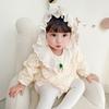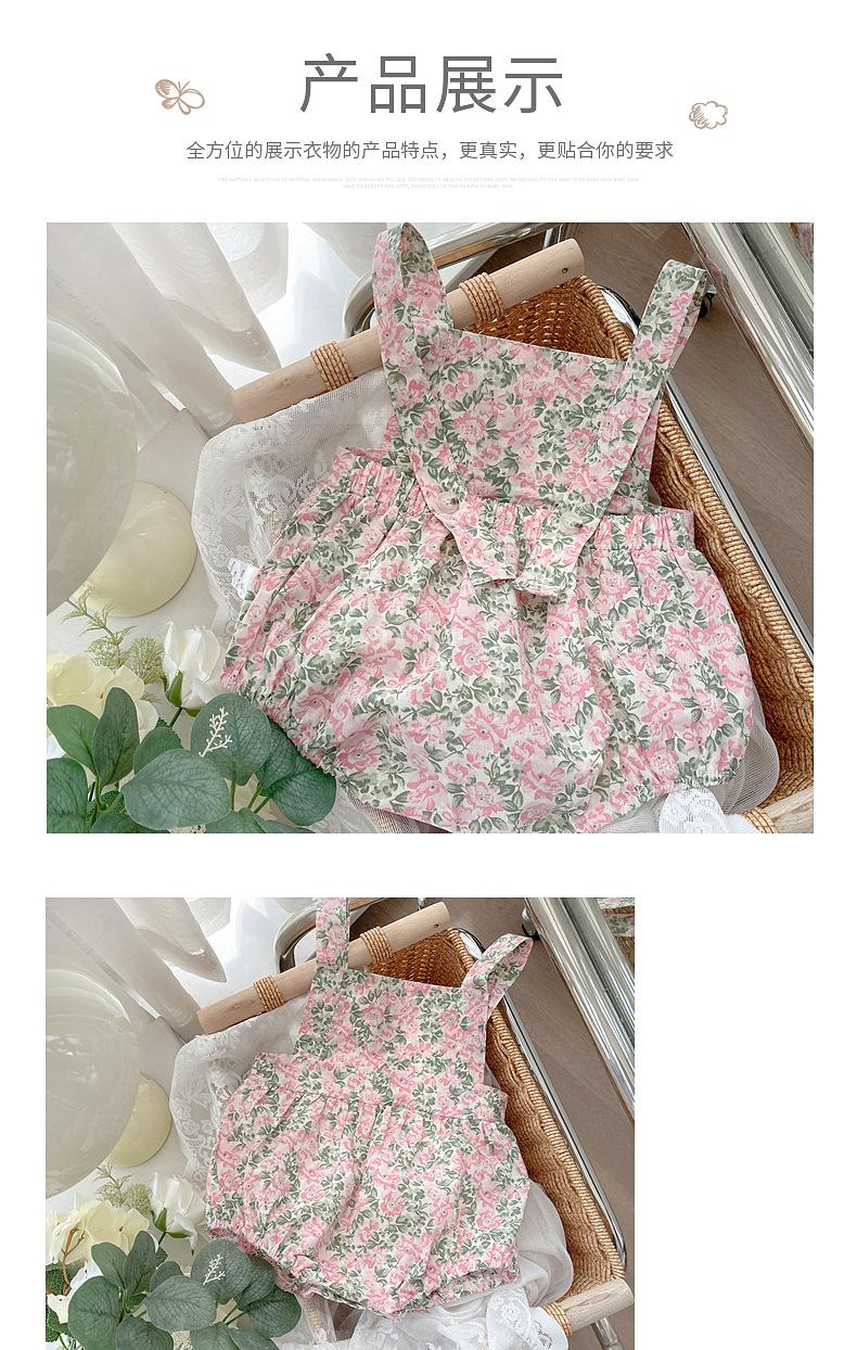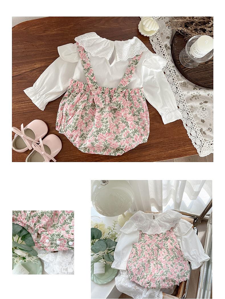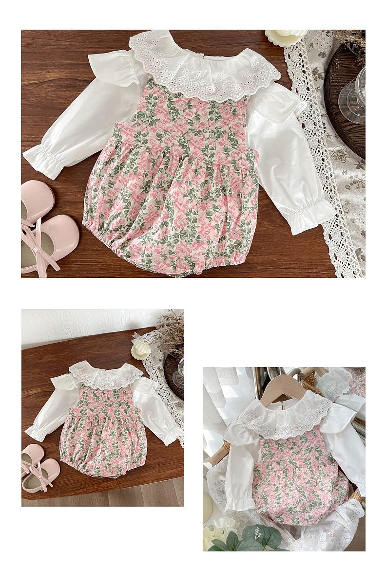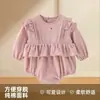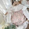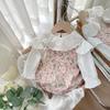 24 otoño nueva ropa de bebé bebé niña floral bolsa pedo traje de escalar dos piezas manga larga top tirante