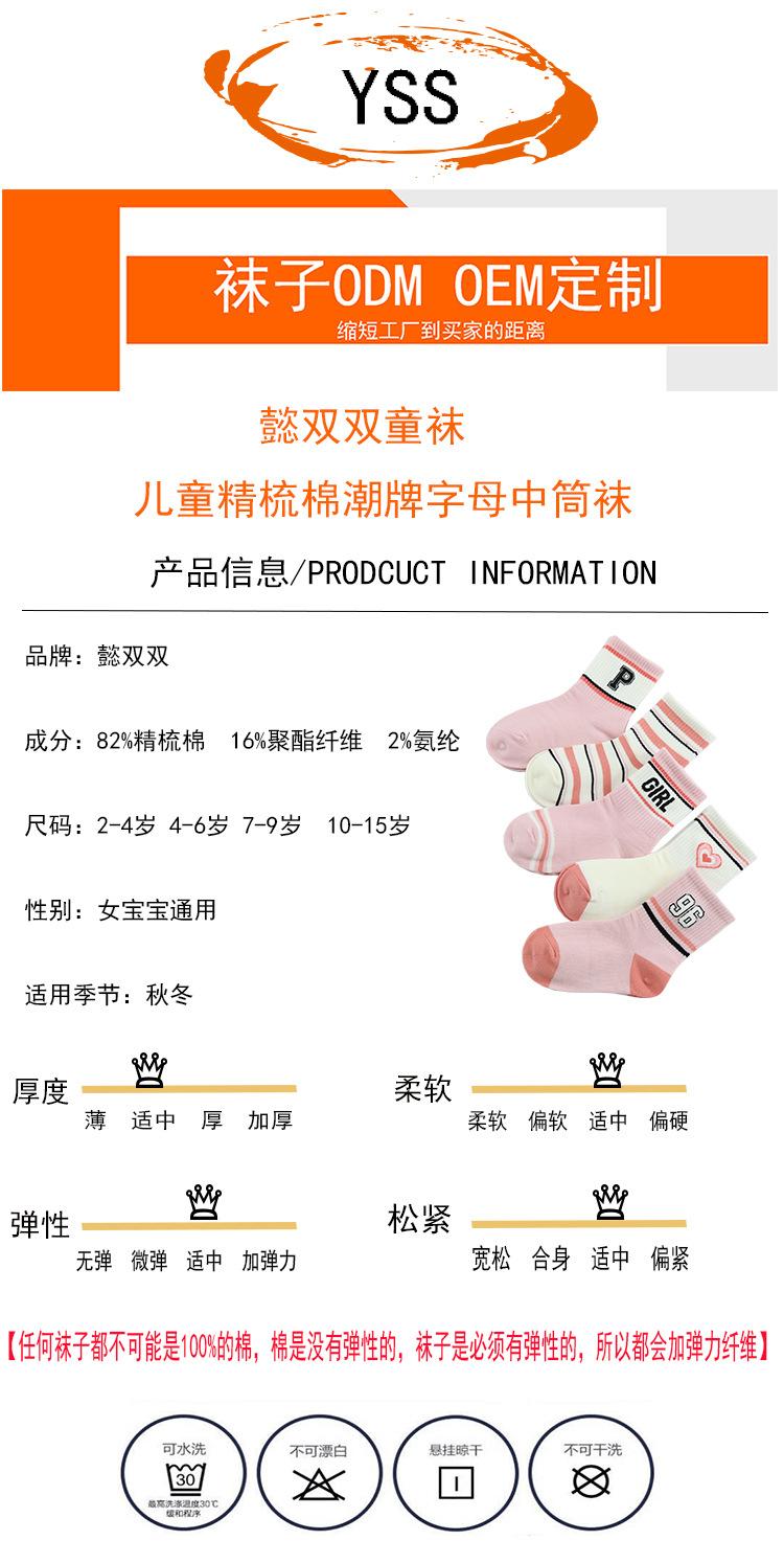 Yi par de calcetines para niños otoño e invierno nueva moda marca letra calcetines de media caña algodón peinado calcetines deportivos para niñas calcetines de algodón para estudiantes