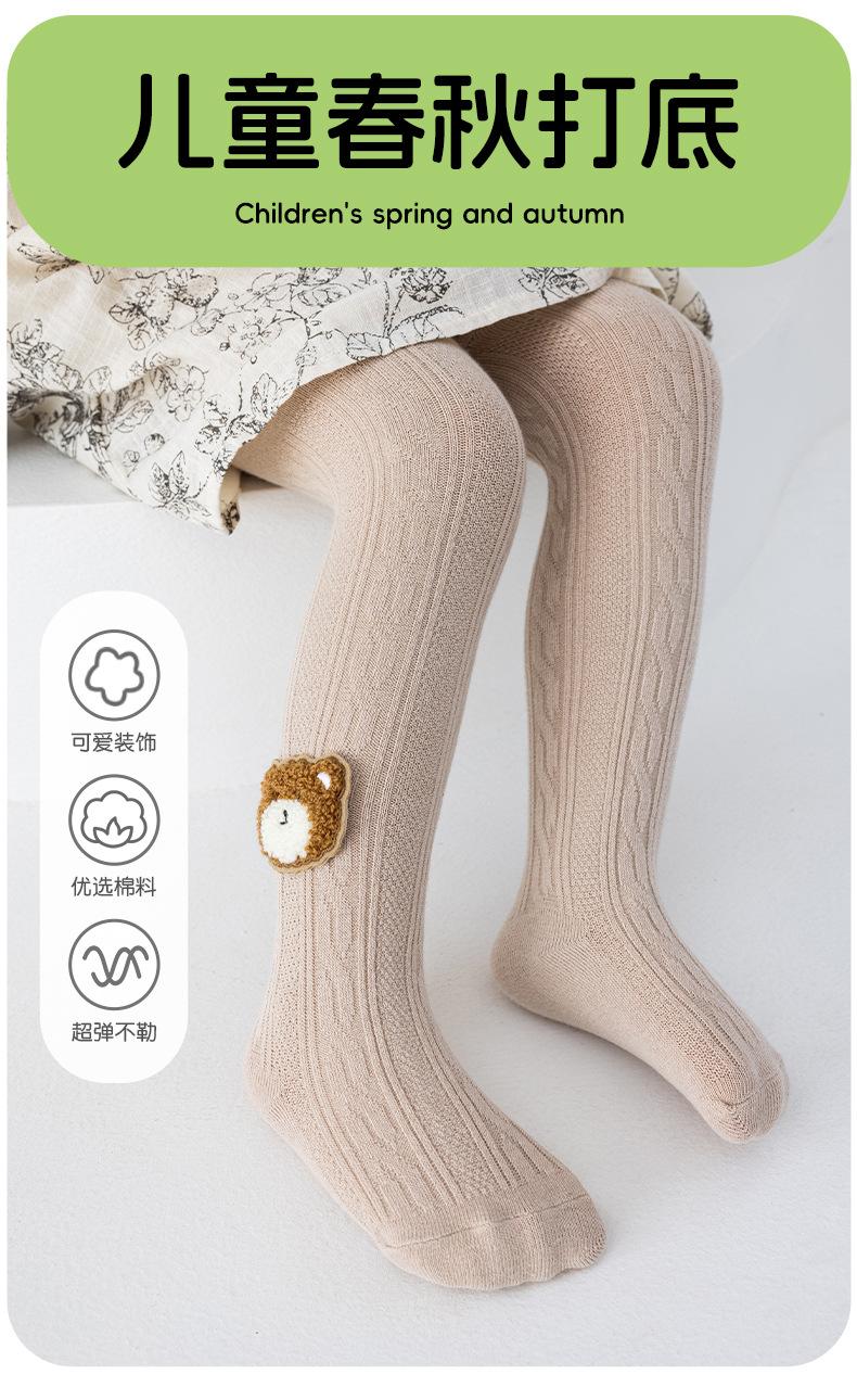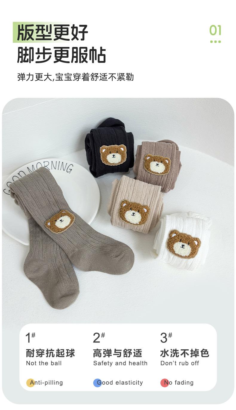 Nuevas mallas de oso para bebé, calcetines de moda de primavera y otoño para niños, medias de algodón puro para niñas, medias abiertas de otoño