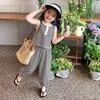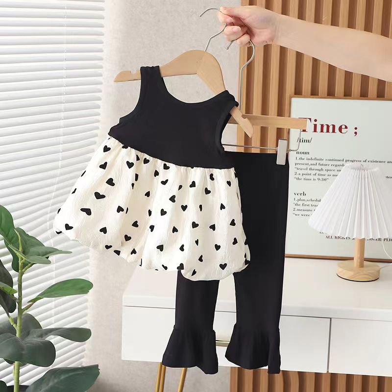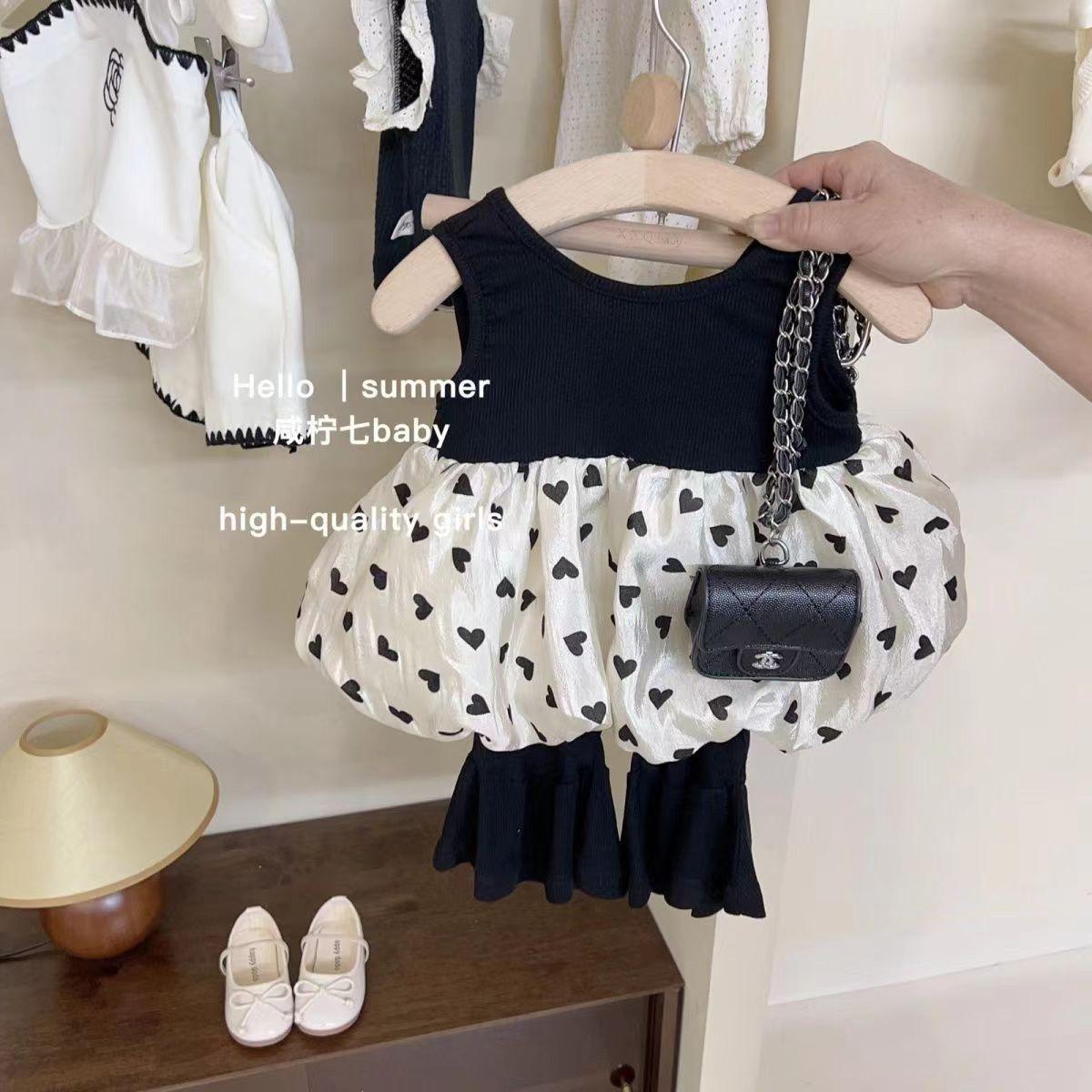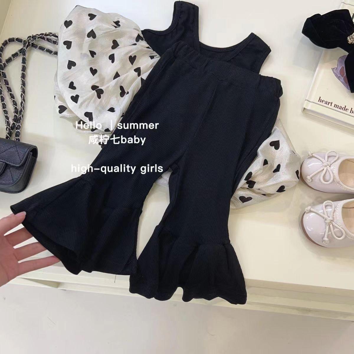 Traje de verano para niñas, estilo occidental, para bebés, con personalidad infantil, estilo coreano moderno, ideal para celebraciones en Internet, con chaleco y pantalones acampanados.