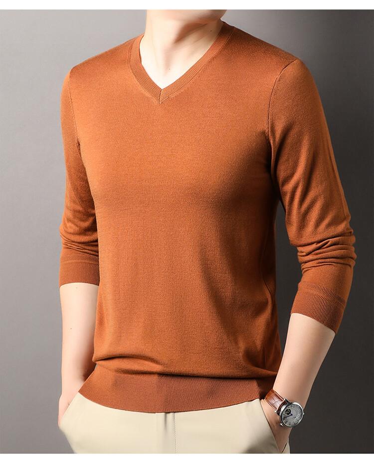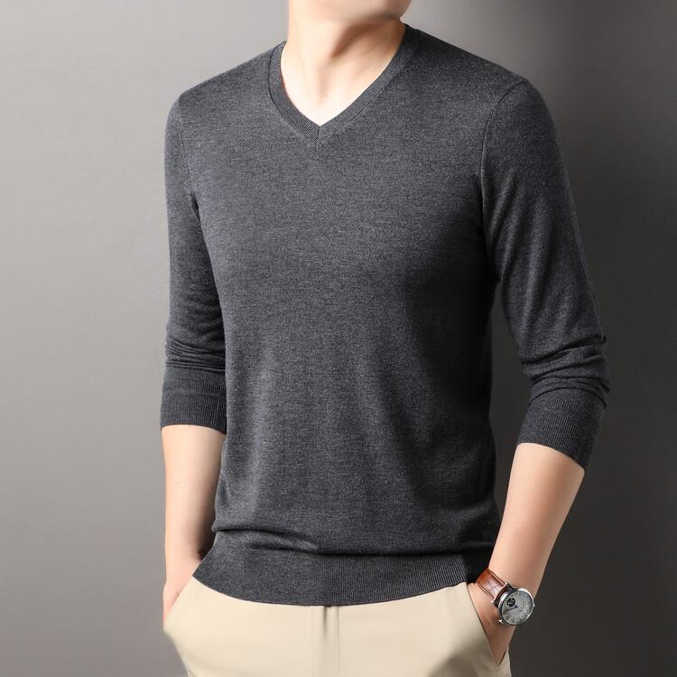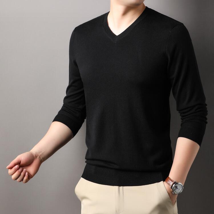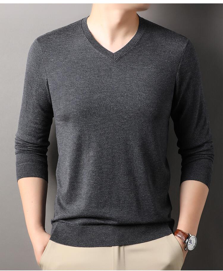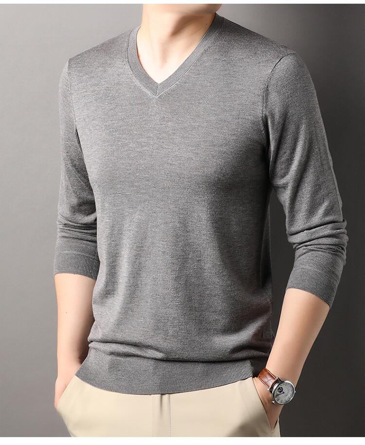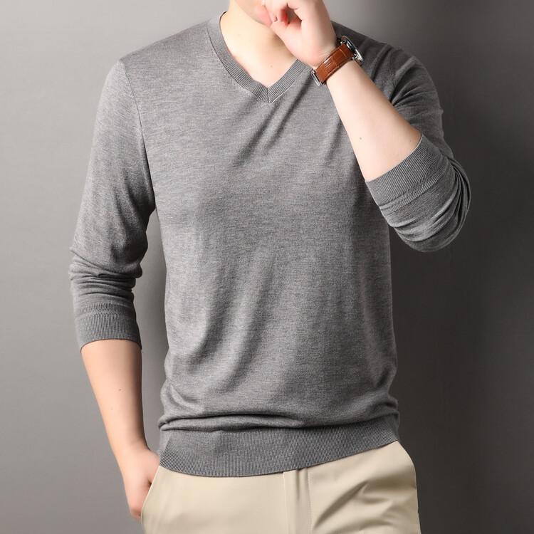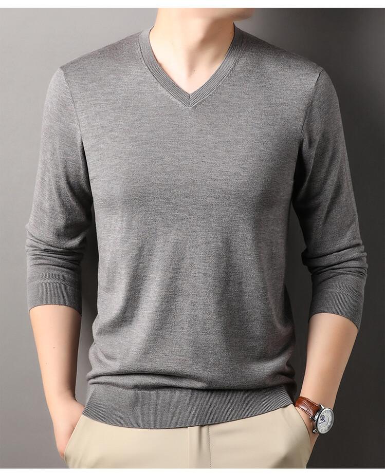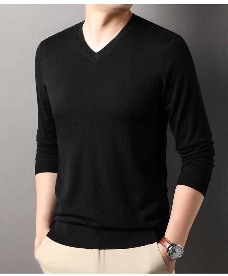 Suéter de otoño e invierno para hombre, suéter fino, suéter informal nuevo, suéter de color sólido con cuello en V, suéter para hombre al por mayor