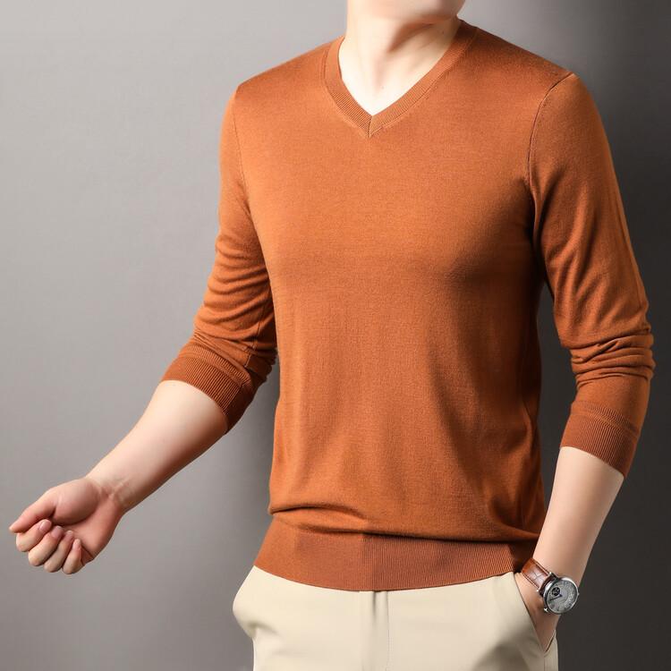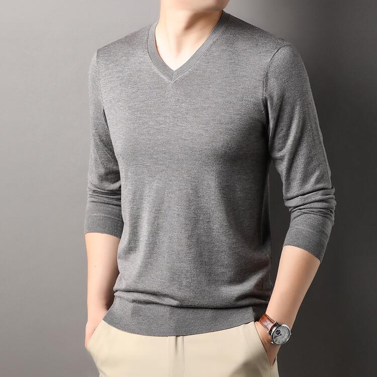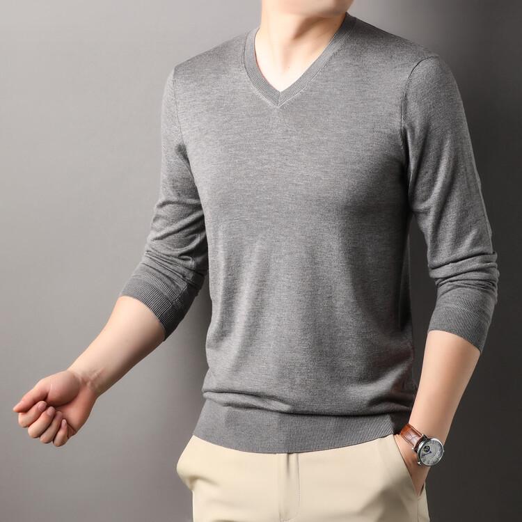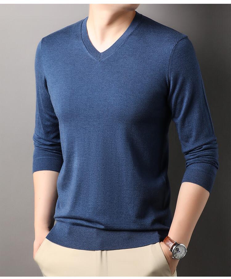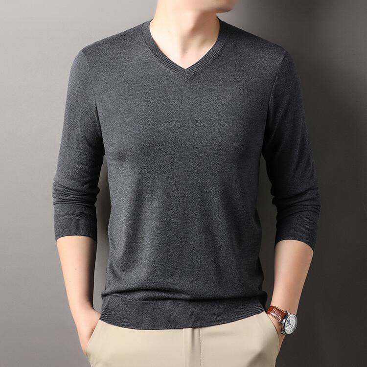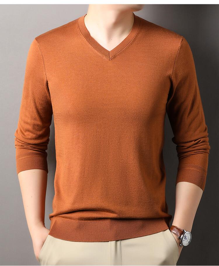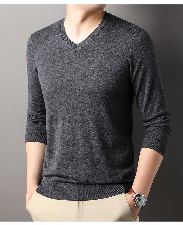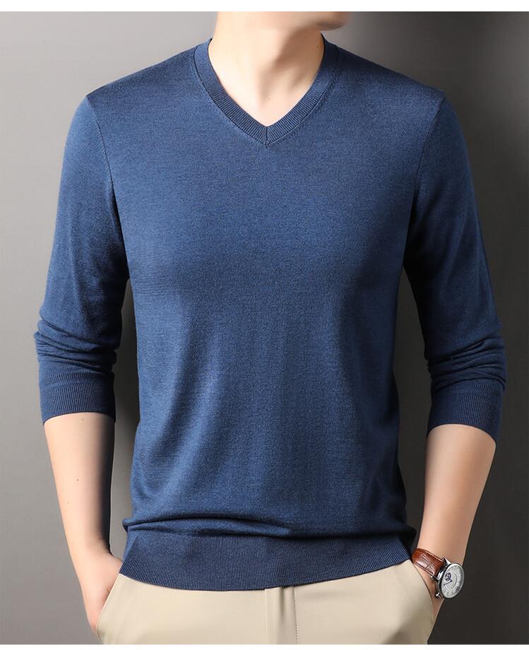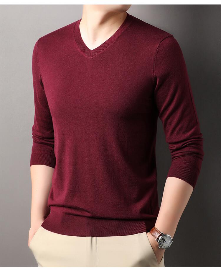 Suéter de otoño e invierno para hombre, suéter fino, suéter informal nuevo, suéter de color sólido con cuello en V, suéter para hombre al por mayor