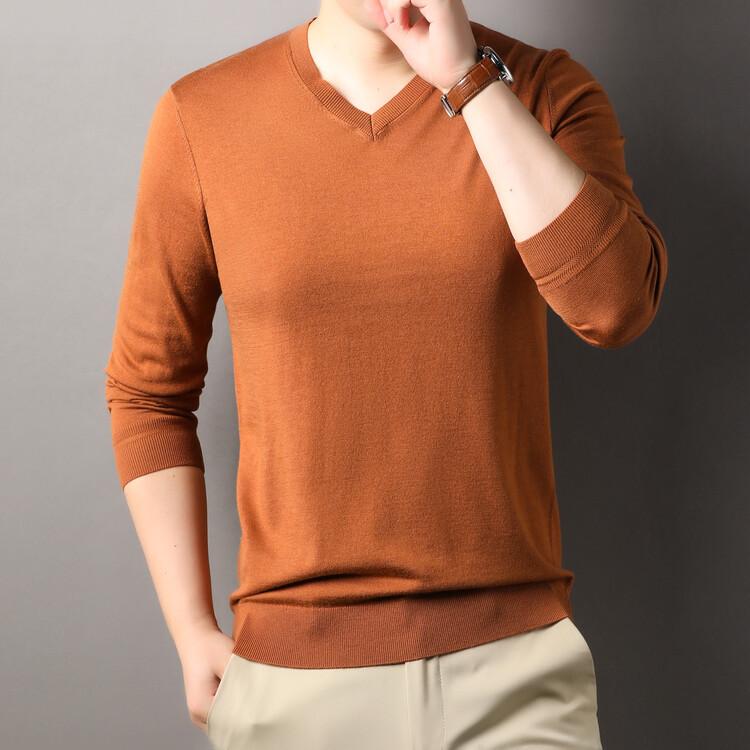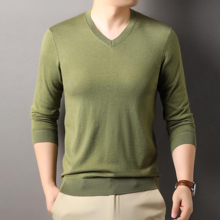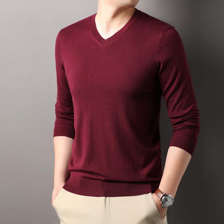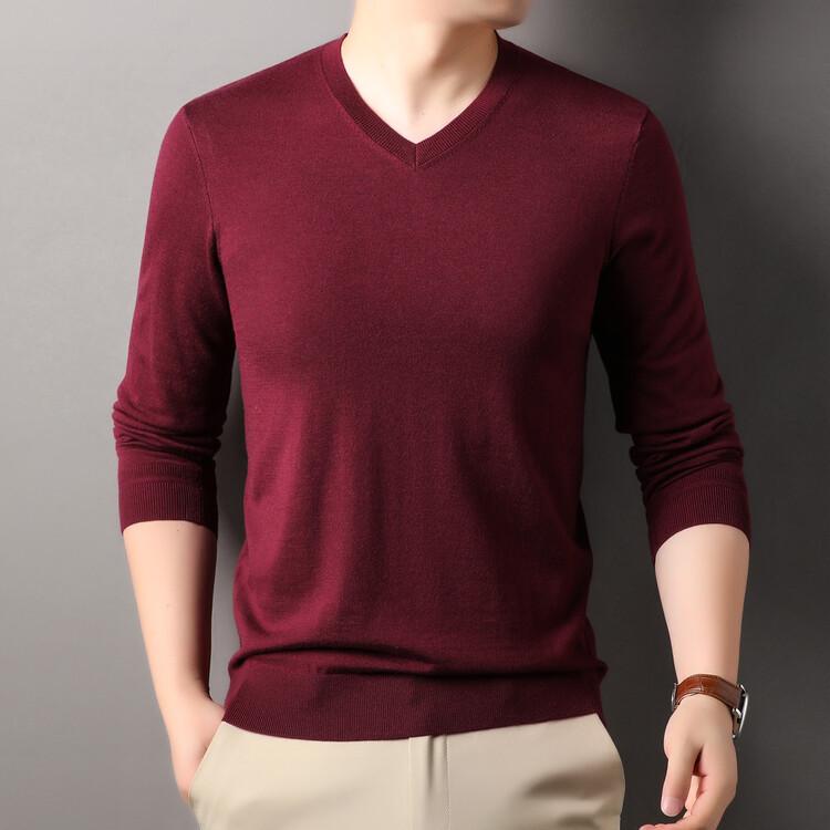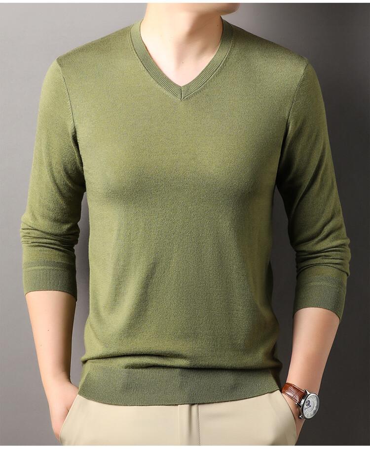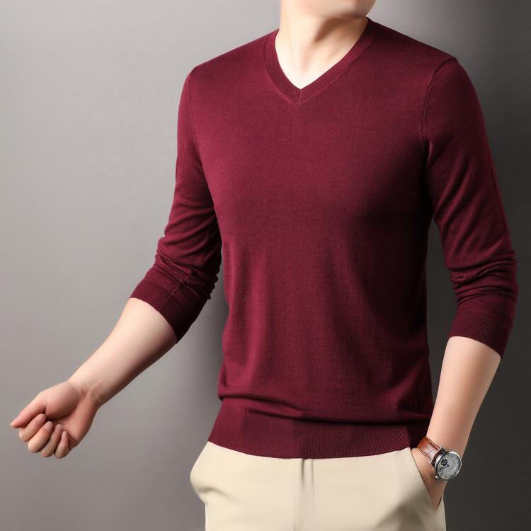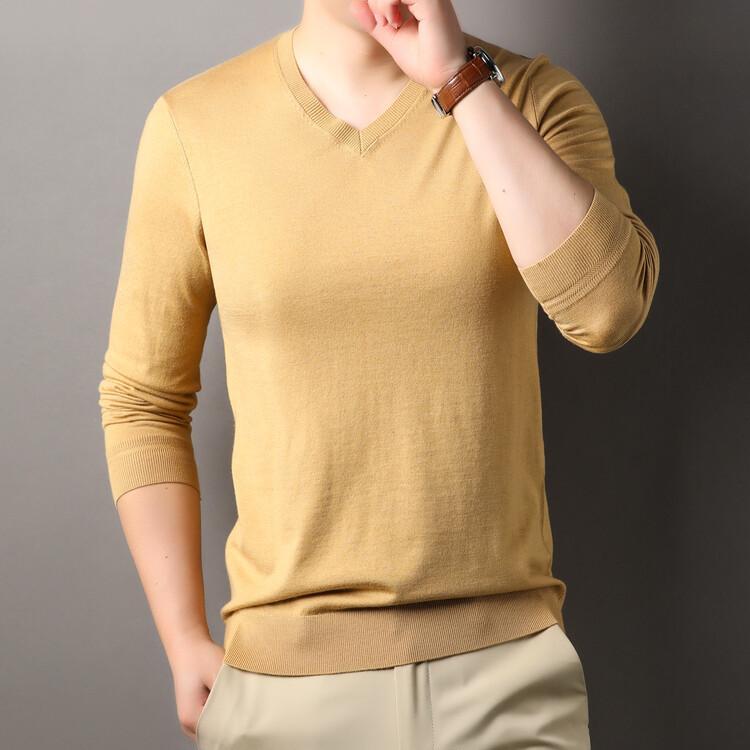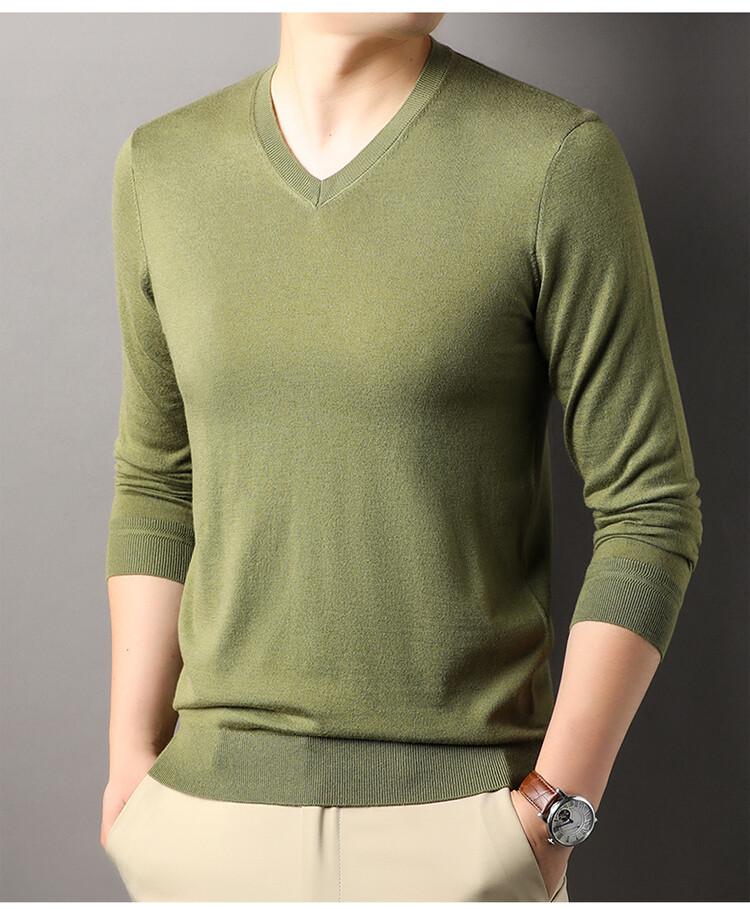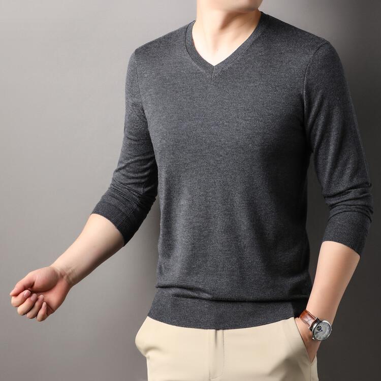 Suéter de otoño e invierno para hombre, suéter fino, suéter informal nuevo, suéter de color sólido con cuello en V, suéter para hombre al por mayor