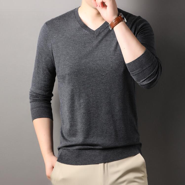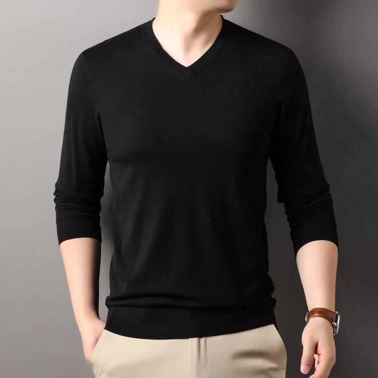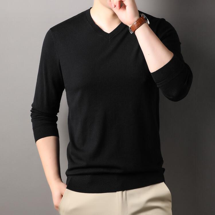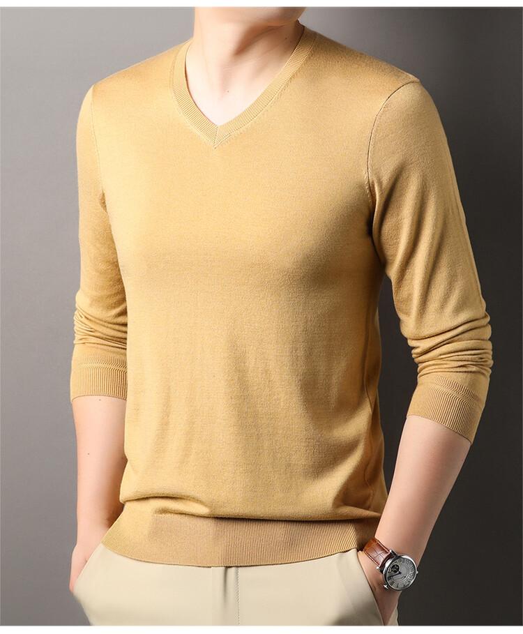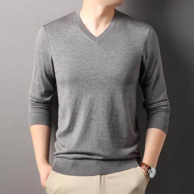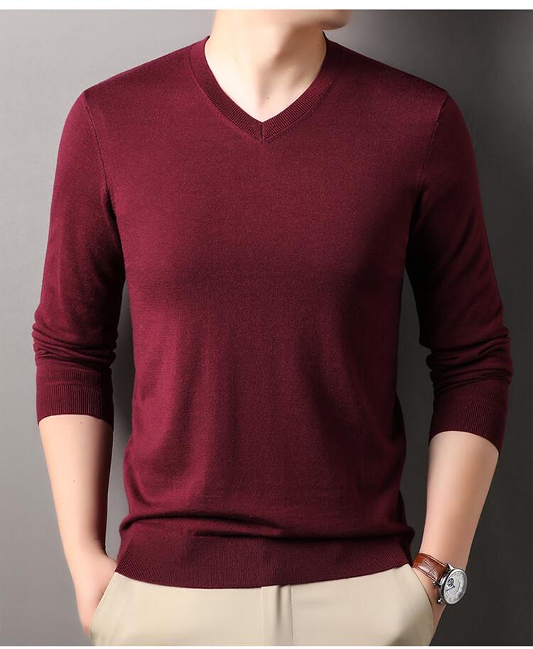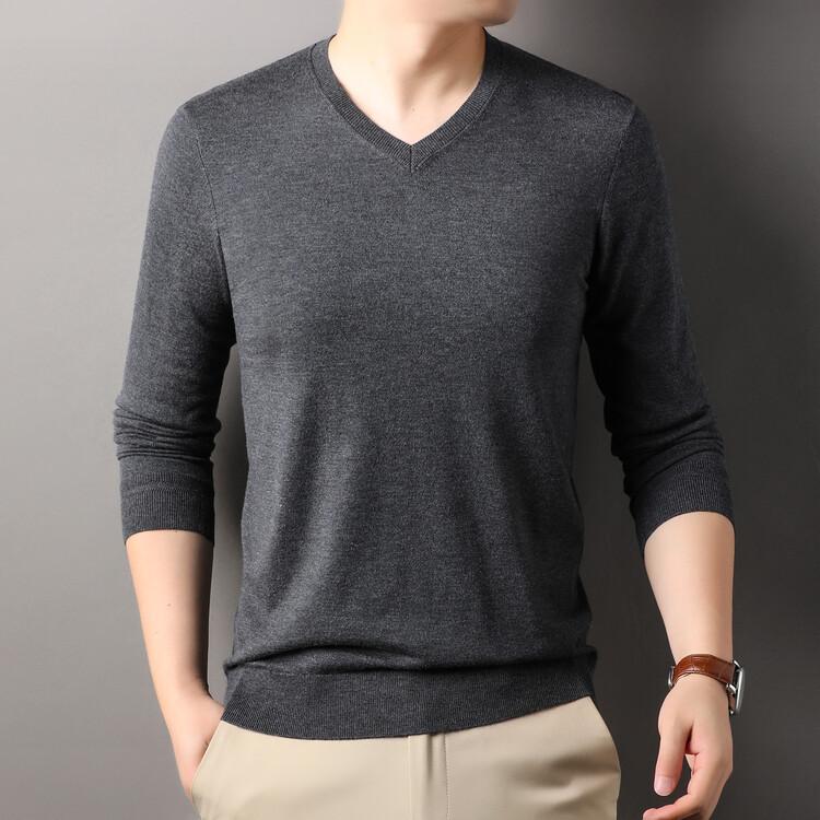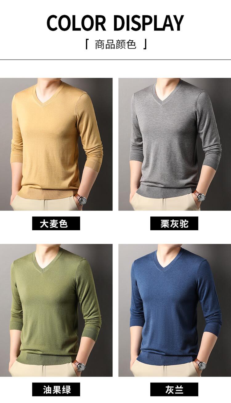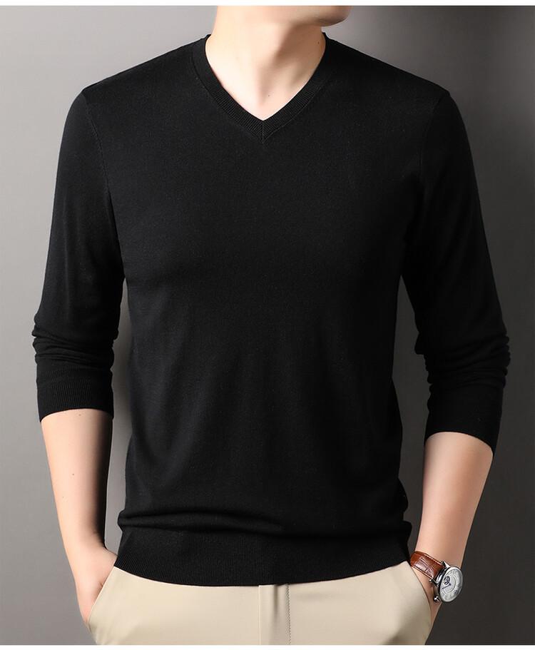 Suéter de otoño e invierno para hombre, suéter fino, suéter informal nuevo, suéter de color sólido con cuello en V, suéter para hombre al por mayor