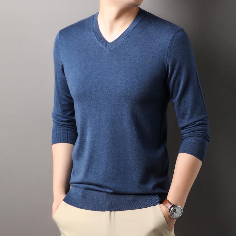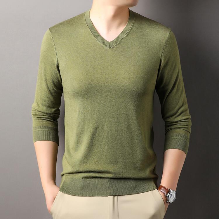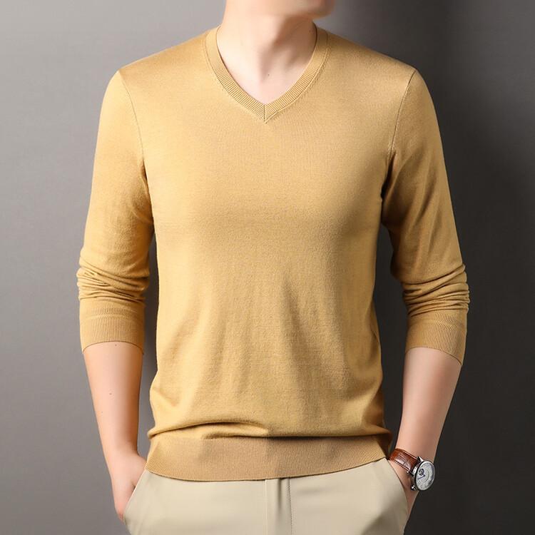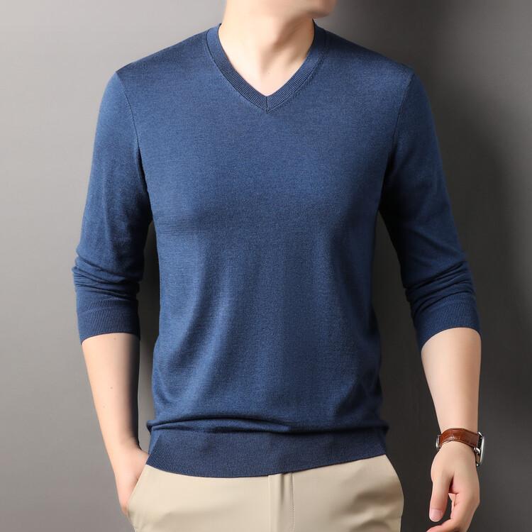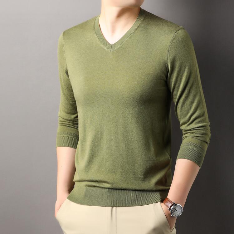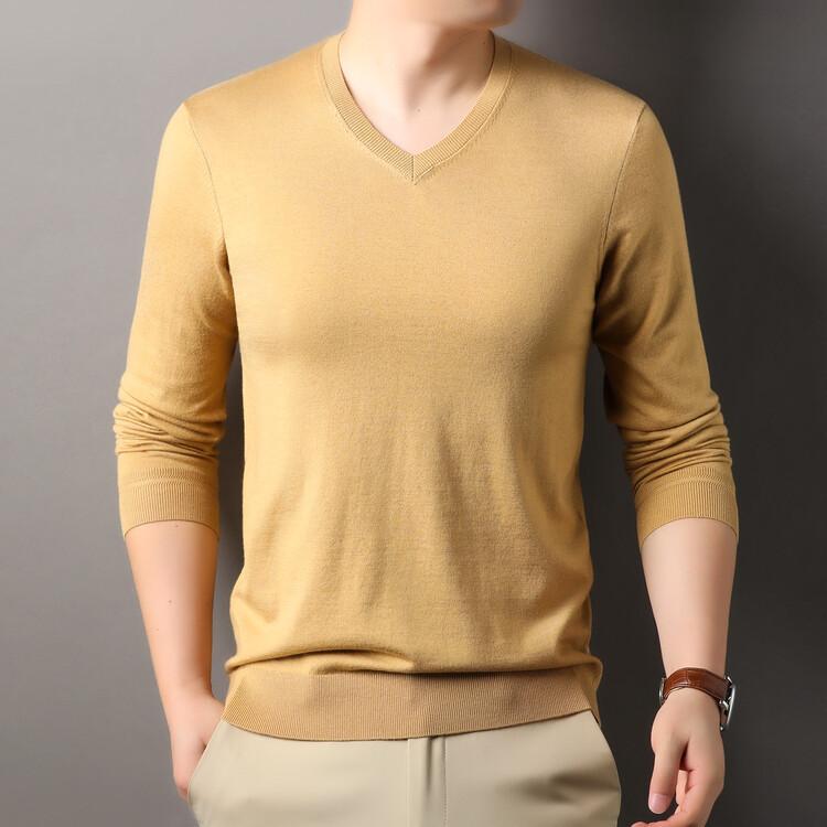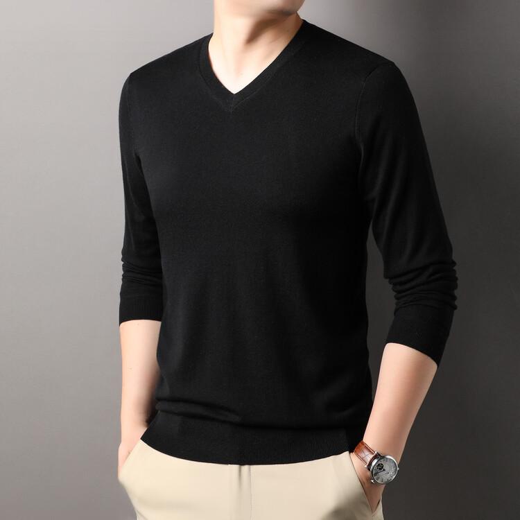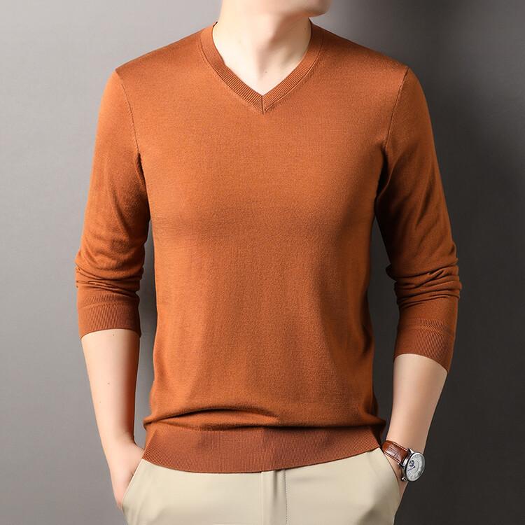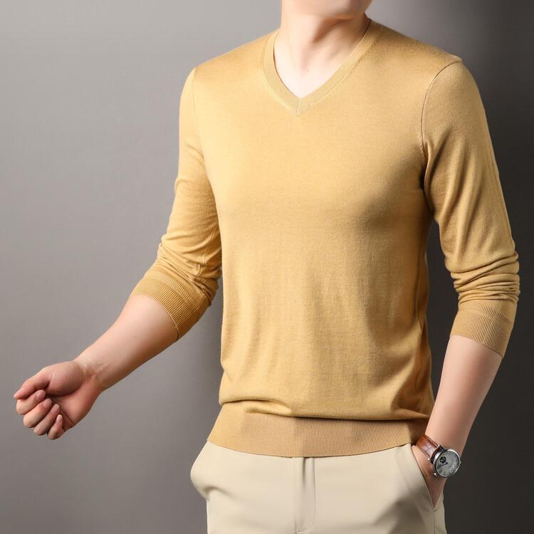 Suéter de otoño e invierno para hombre, suéter fino, suéter informal nuevo, suéter de color sólido con cuello en V, suéter para hombre al por mayor