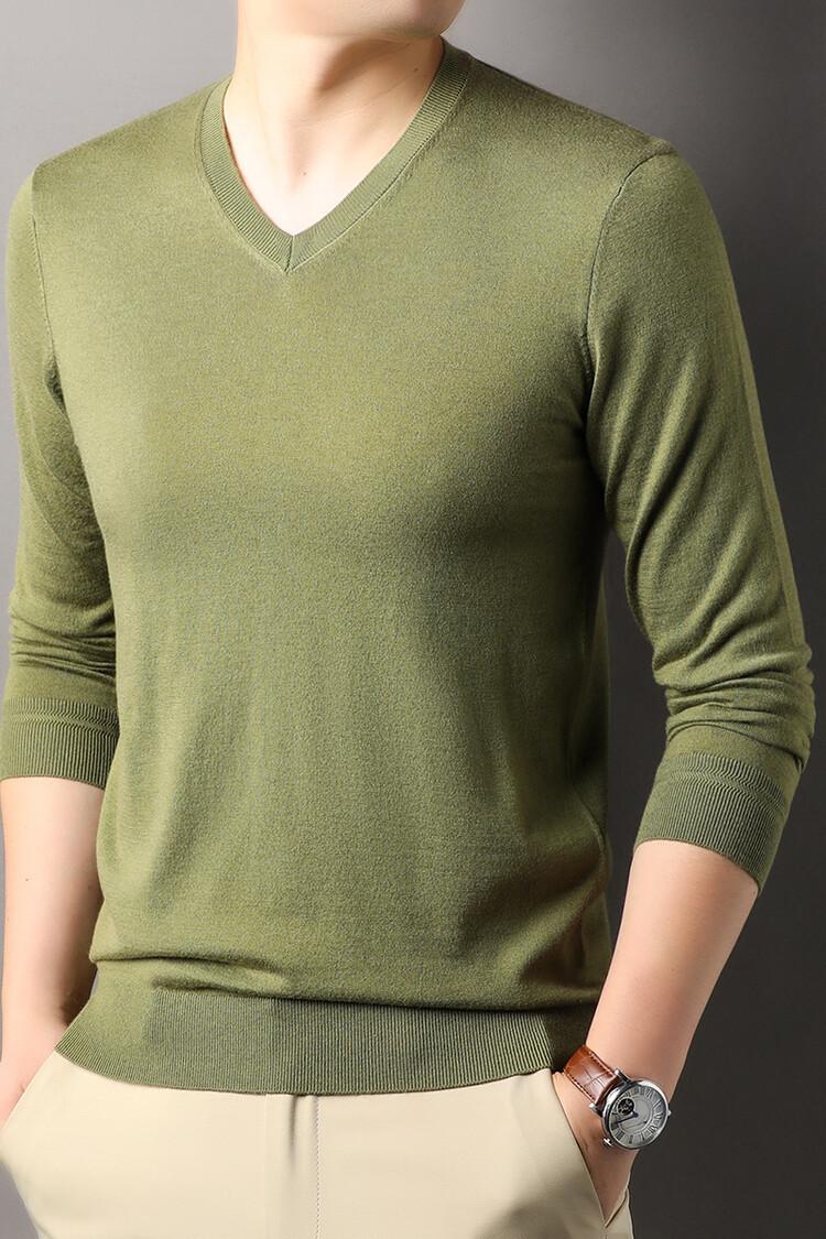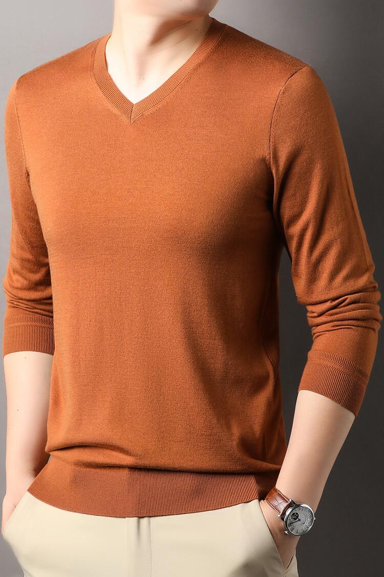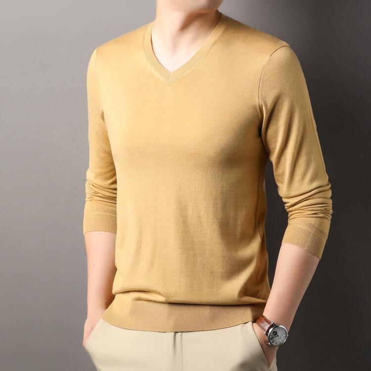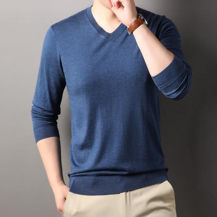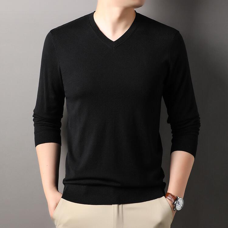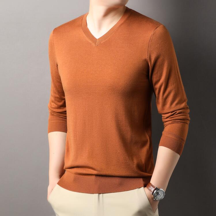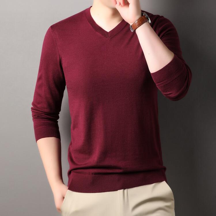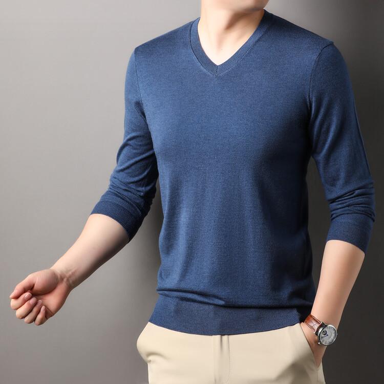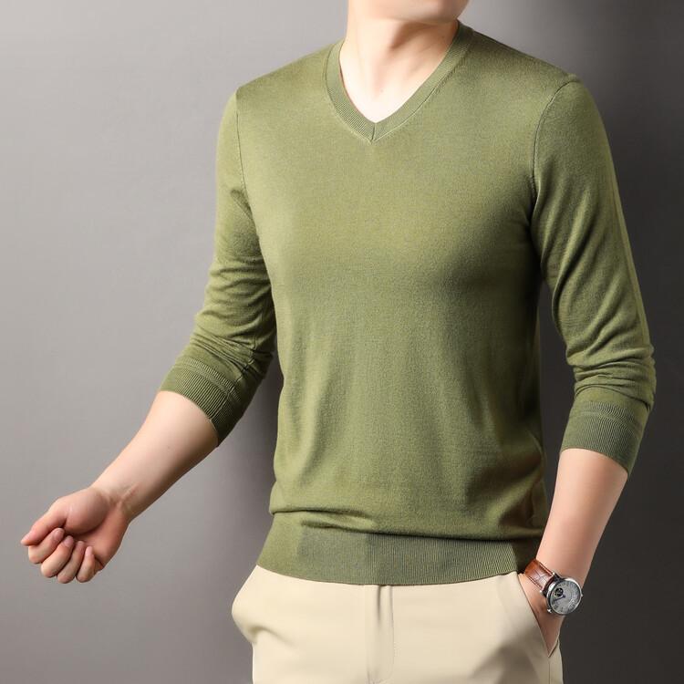 Suéter de otoño e invierno para hombre, suéter fino, suéter informal nuevo, suéter de color sólido con cuello en V, suéter para hombre al por mayor