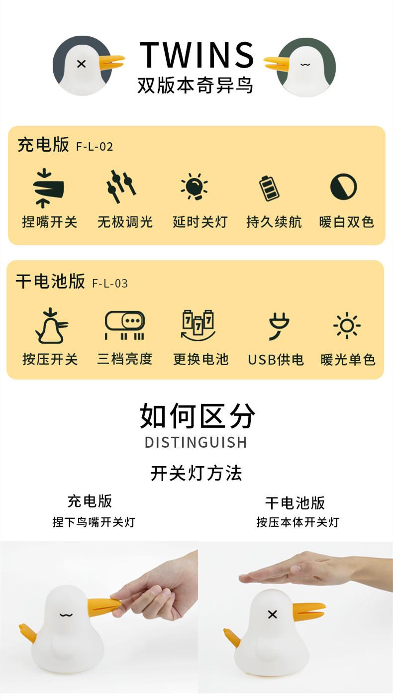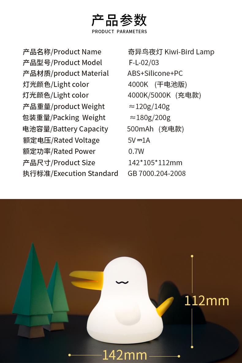 Luz Nocturna de Silicona de Dibujos Animados de Kiwi Regalo Recargable Temporizador Atenuación de Doble Color Protección Ocular Luz de Compañía para Dormir para Habitación Infantil