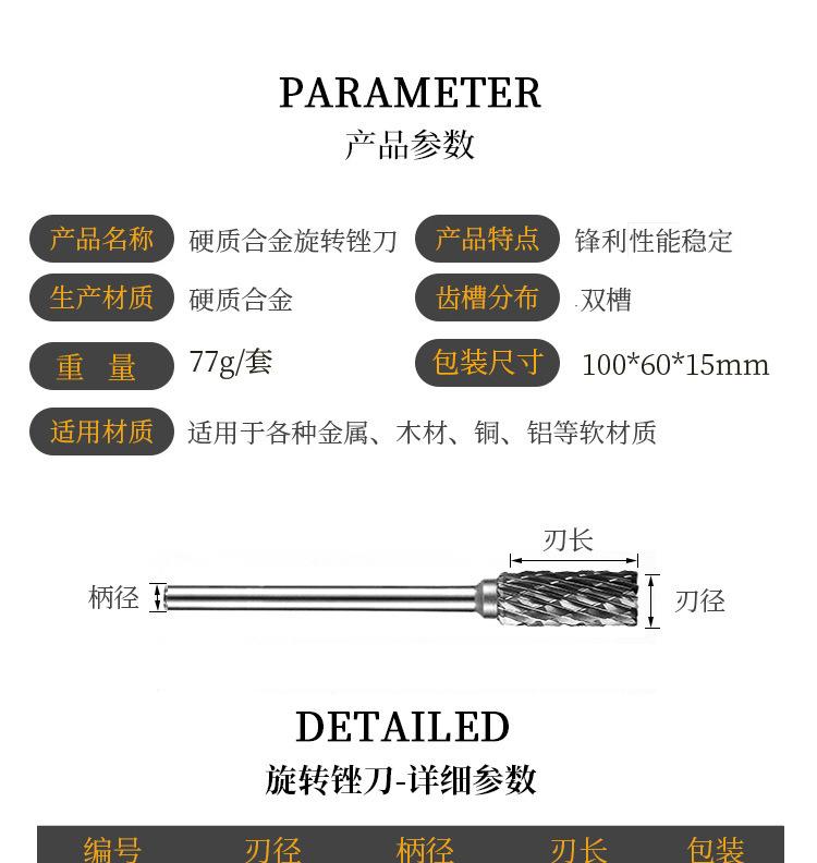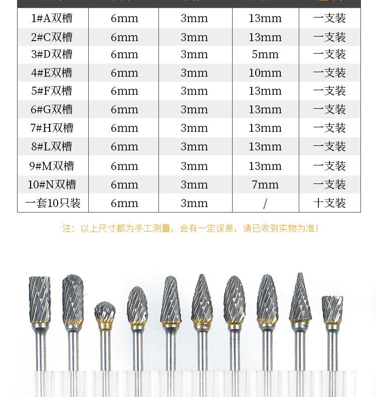Cabezal de rectificado de acero de tungsteno transfronterizo carburo lima rotativa fresa carpintería tallado de raíz escariado cabezal de rectificado de metal 3*6 juego