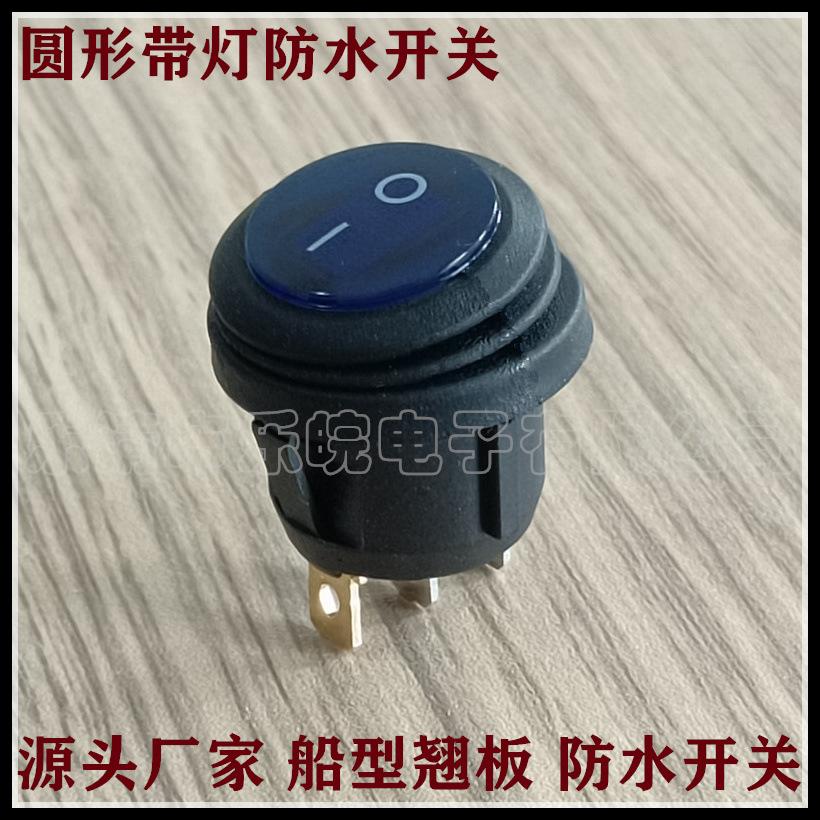 Interruptor basculante redondo impermeable de 20 mm con orificio abierto con luz Kcd2 Interruptor de alimentación impermeable redondo de tres pines con luz