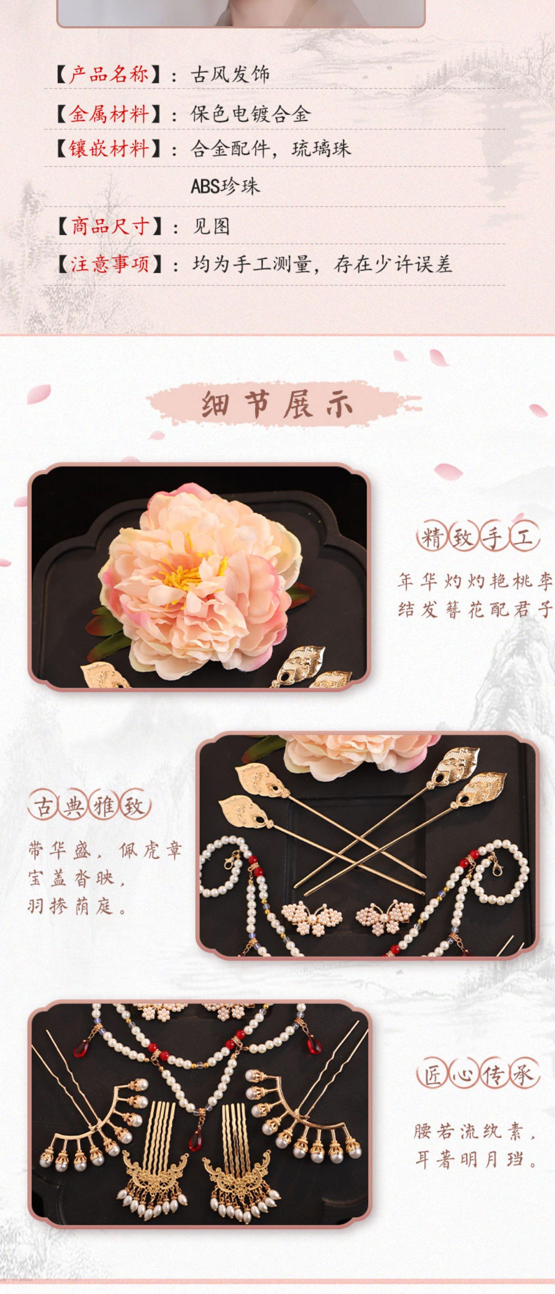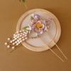 Accesorios para el cabello Hanfu de estilo antiguo, Horquillas de princesa dulce, Horquillas de perlas, Elegantes horquillas de flores artificiales, Juego de joyas con peine para el cabello