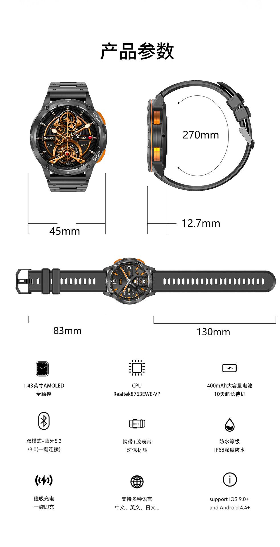 Reloj Inteligente Ak59 Reloj para Hombre Ventas Calientes Transfronterizas Deportes Alta Definición Amoled Pantalla Grande Bajo Consumo de Energía Resistente al Agua