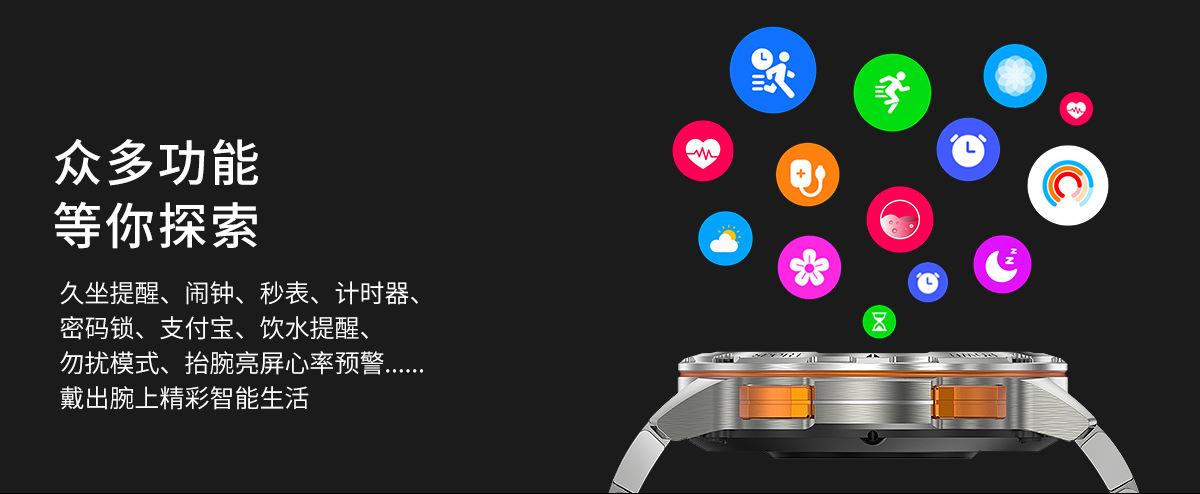 Waterproof, Take photos, Step counting, Heart rate monitoring, Blood pressure measurement, Social Entertainmen...
