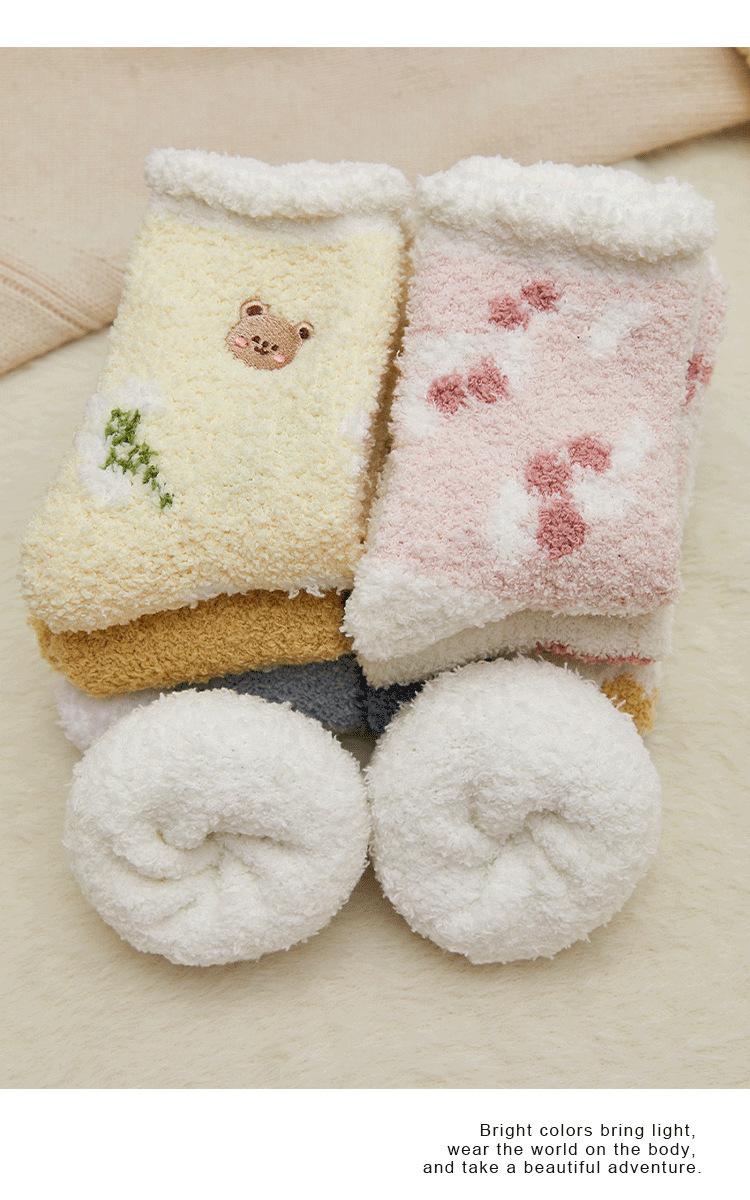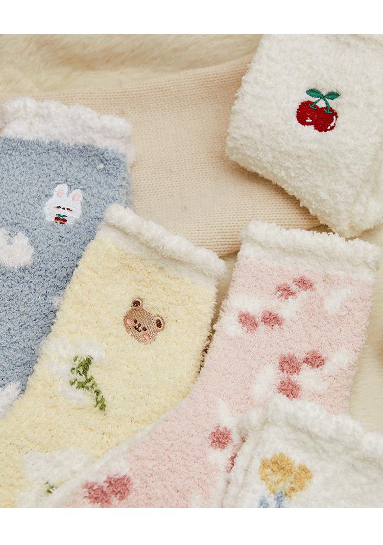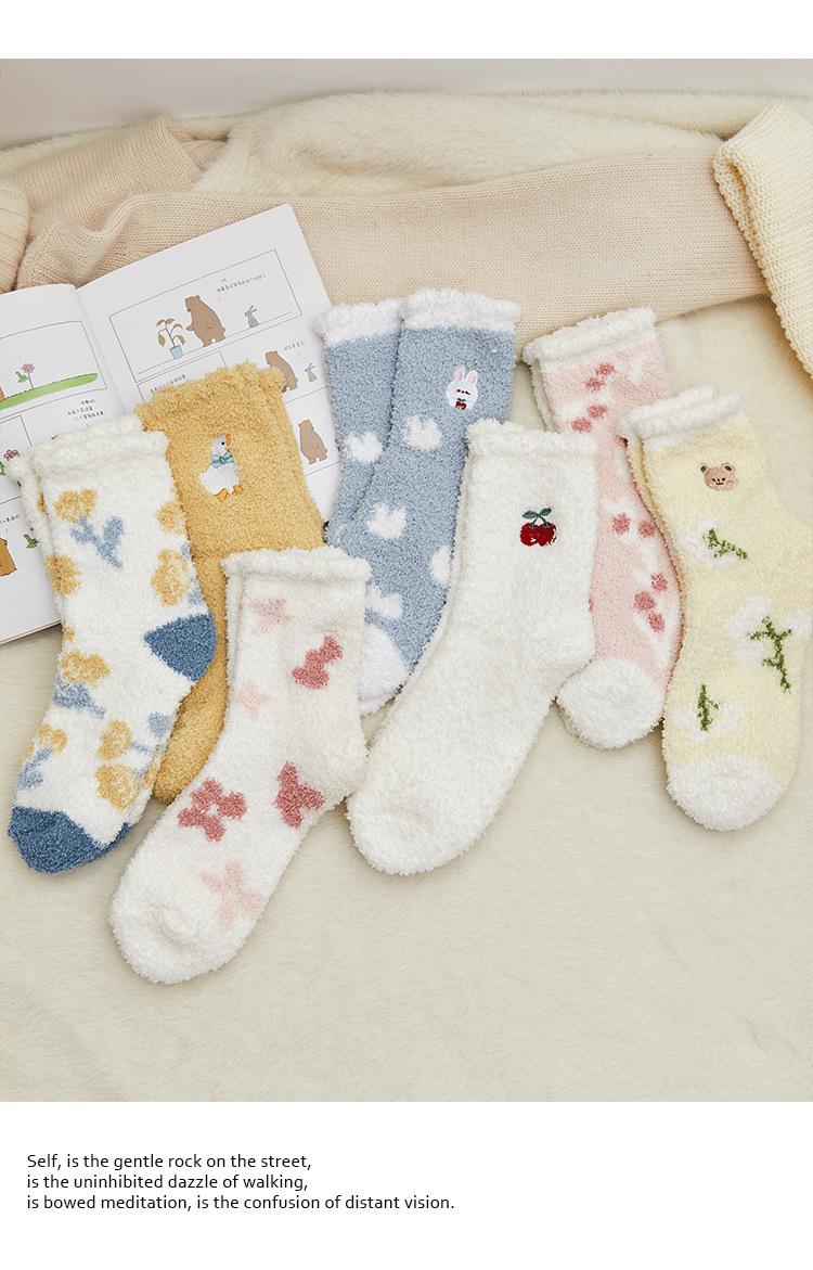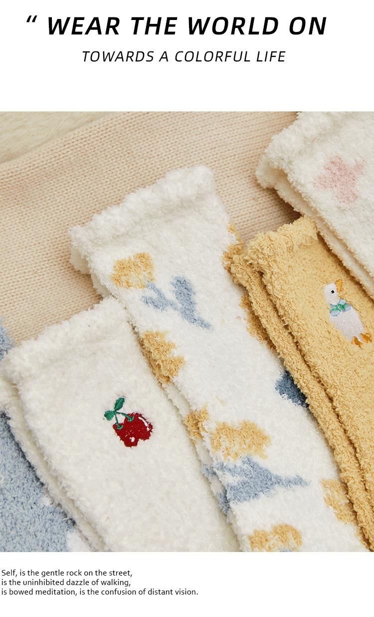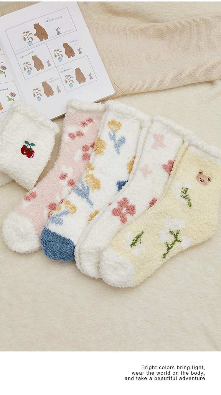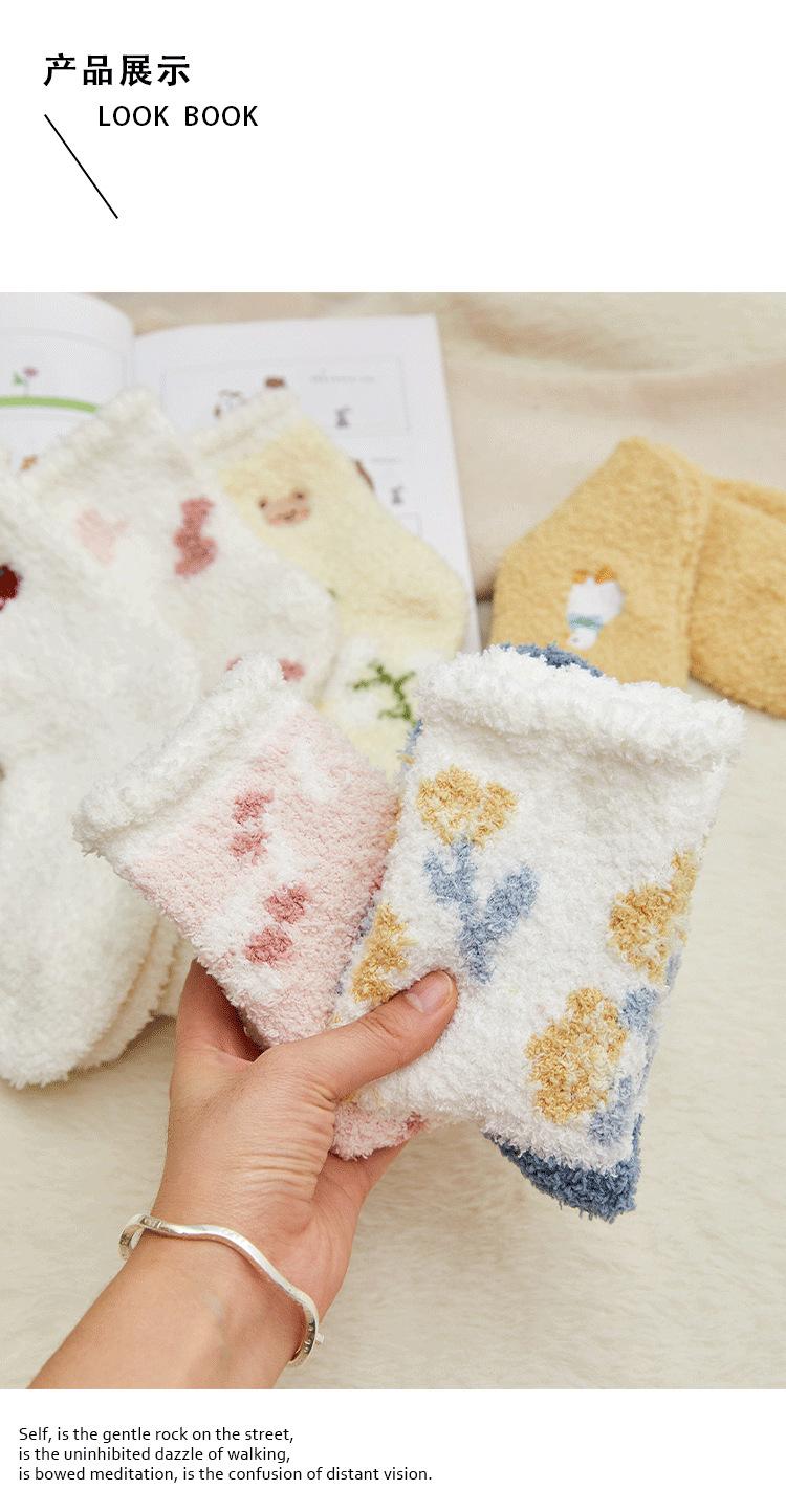 Envío gratis calcetines de terciopelo coral calcetines de mujer calcetines de invierno gruesos cálidos con forro polar bordado calcetines de luna calcetines de piso venta al por mayor Zhuji