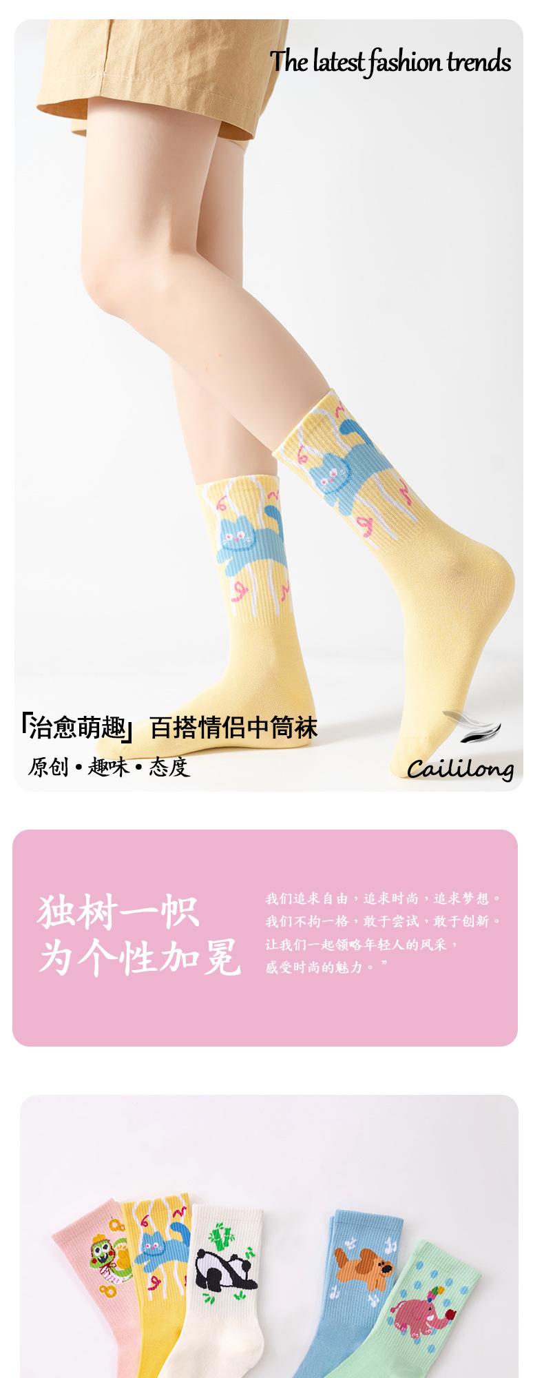 Calcetines de algodón para mujer, de primavera y otoño, con bonito diseño de mascota, a la moda, para combinar con todo, de longitud media, antibacterianos, sin hueso, para el cabello.