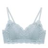 Conjunto de sujetador de encaje sexy con lazo y espalda hermosa sin aros de acero para mujer, sujetador push up fino y ajustable con pecho pequeño