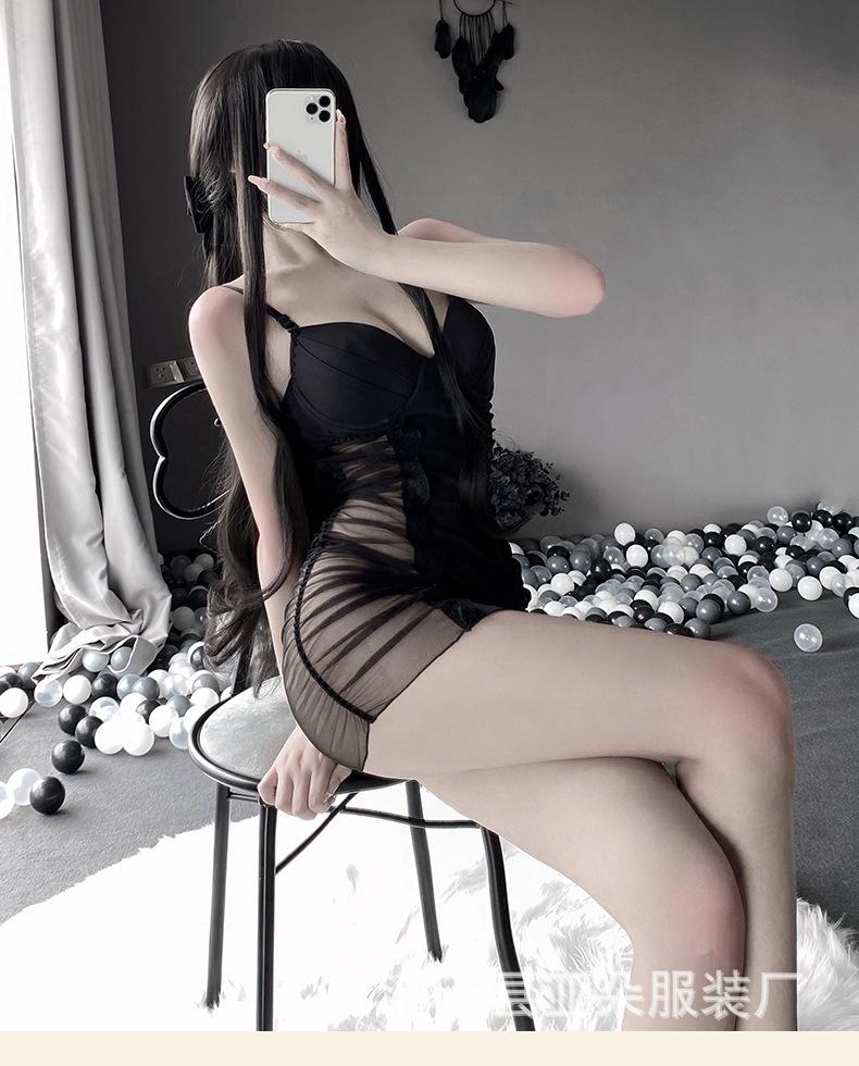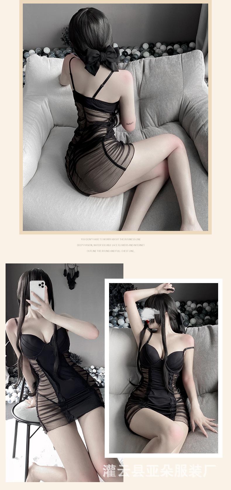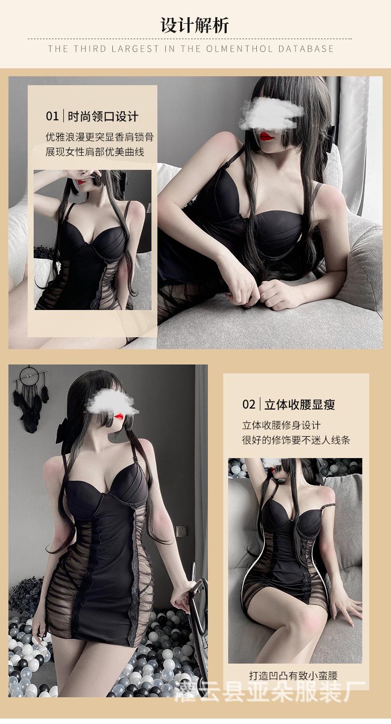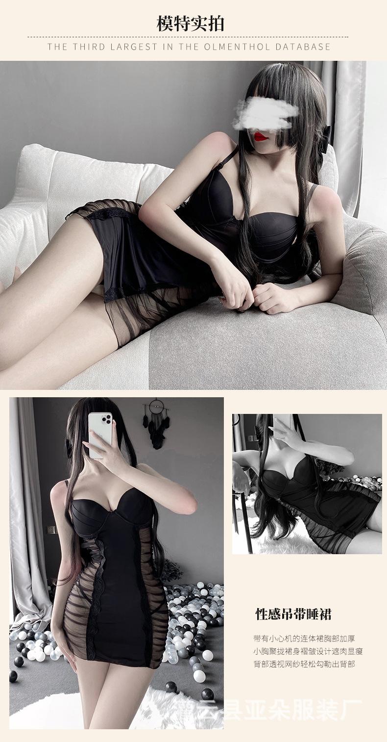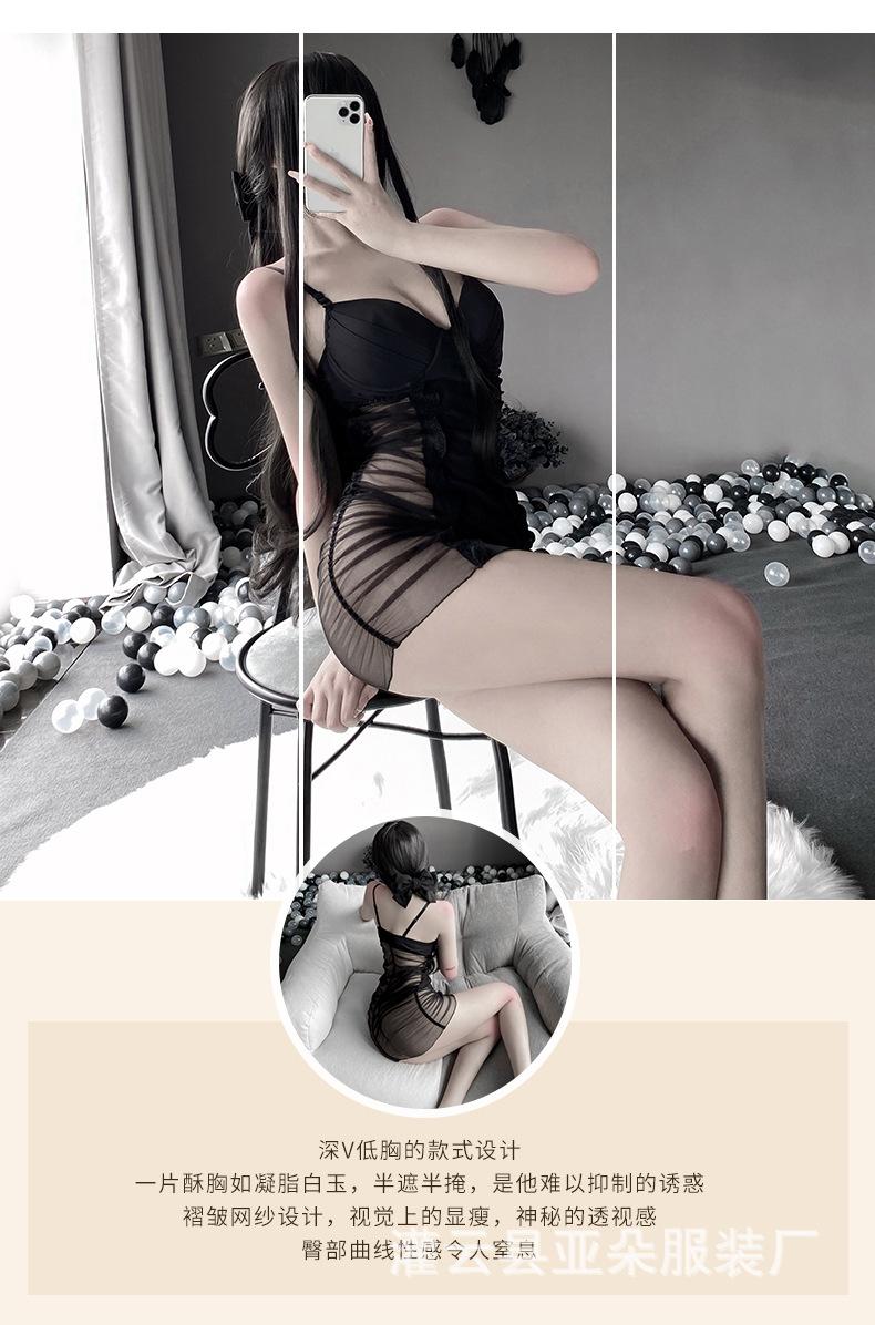 Nuevo conjunto de camisón sexy con escote en V profundo y volantes de malla, tentación, 2467