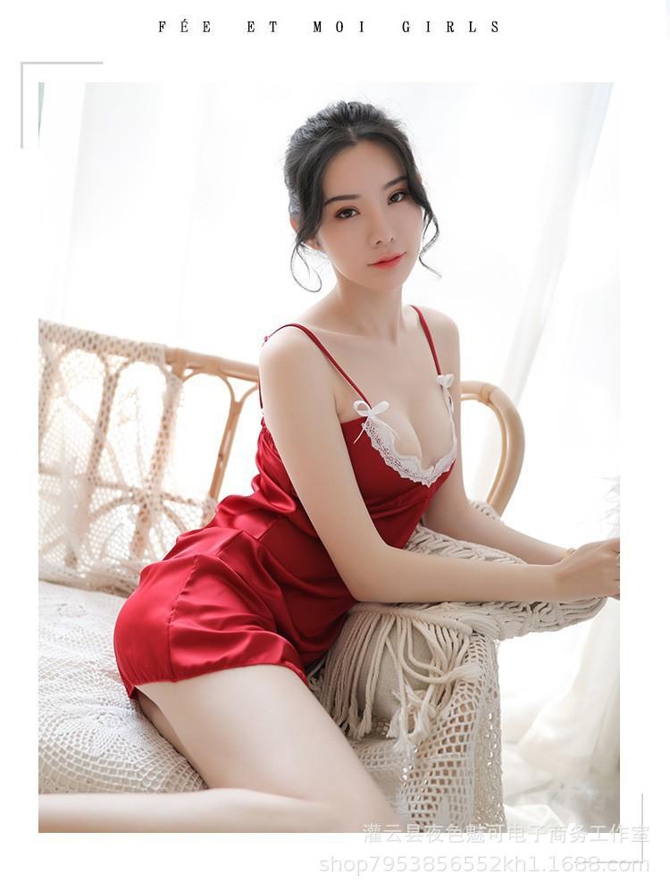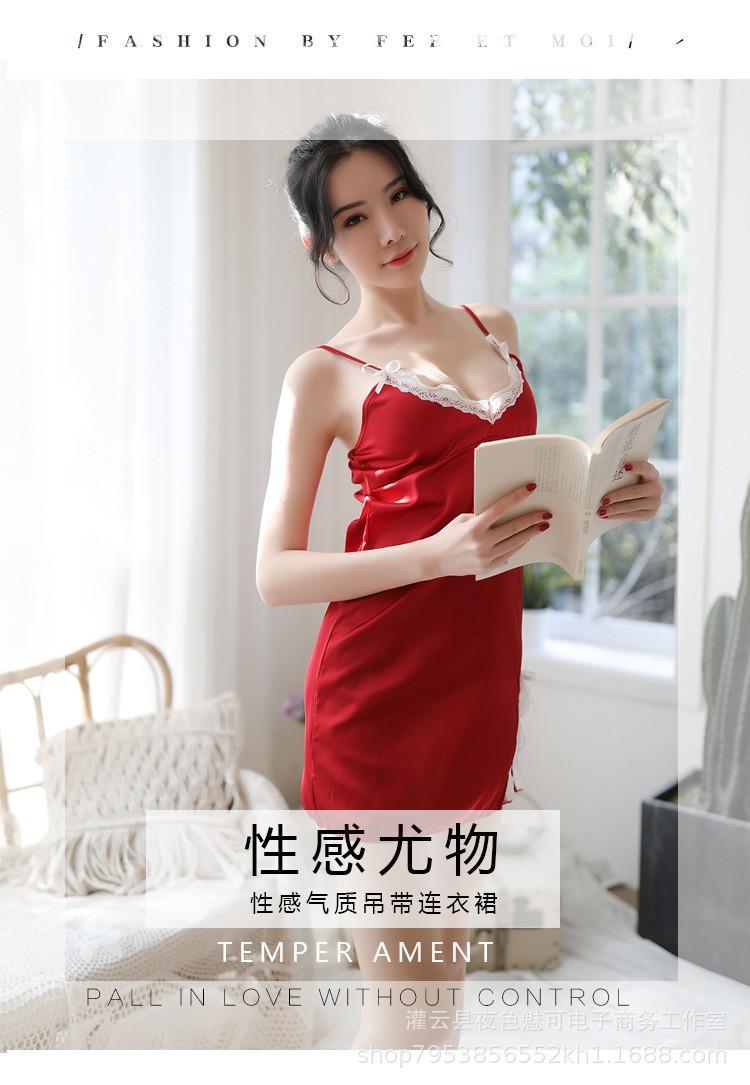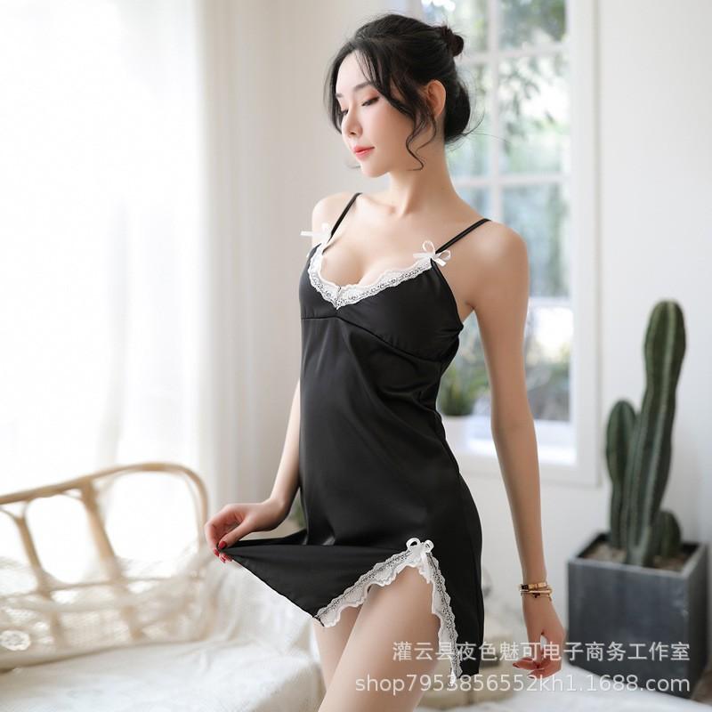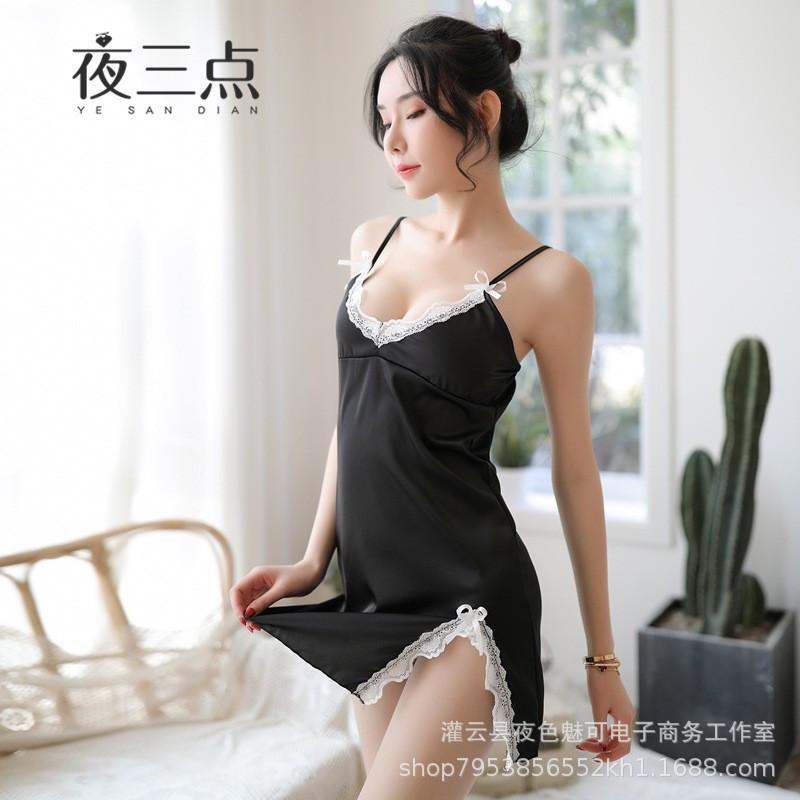 Nuevo camisón sexy de encaje transparente para mujer, lencería sexy, tentación caliente para chica, camisón con tirantes divididos estilo coreano