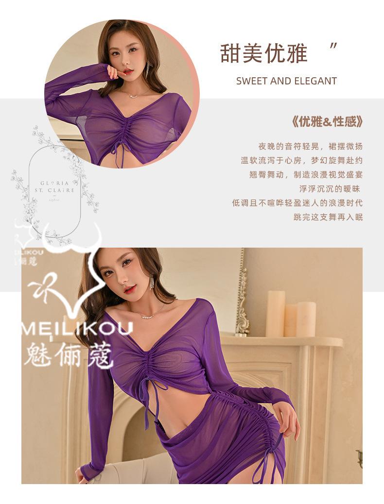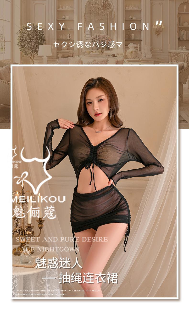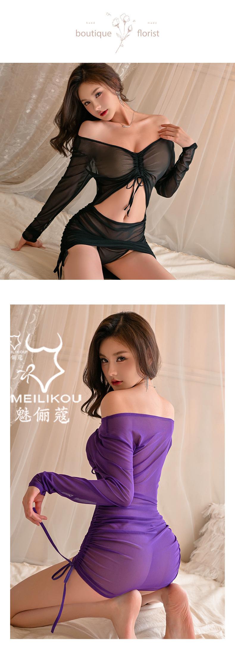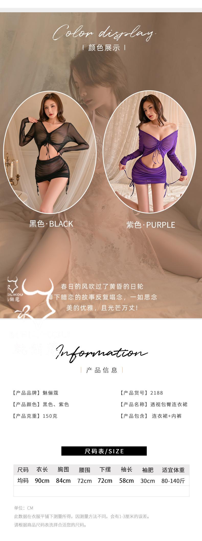 Ropa interior sexy perspectiva manga larga vestido de cadera pasión caliente sexy uniforme tentación pijama traje 2188