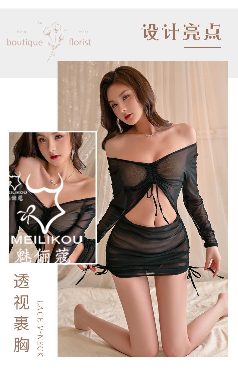 Compra Ropa interior sexy perspectiva manga larga vestido de cadera pasión caliente sexy uniforme tentación pijama traje 2188 al por mayor en Joom.pro