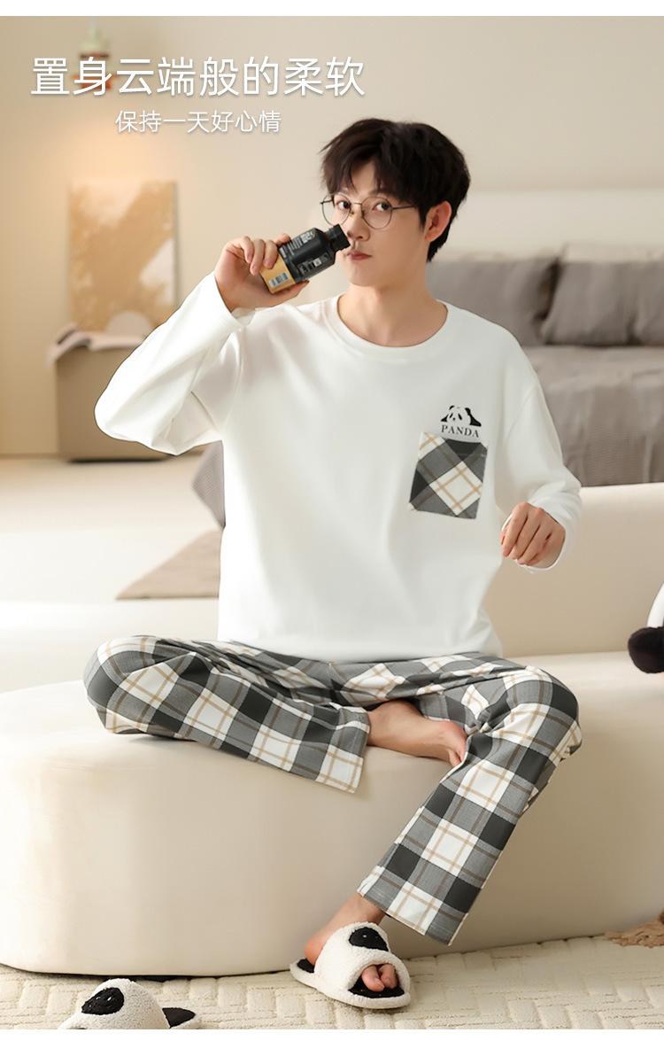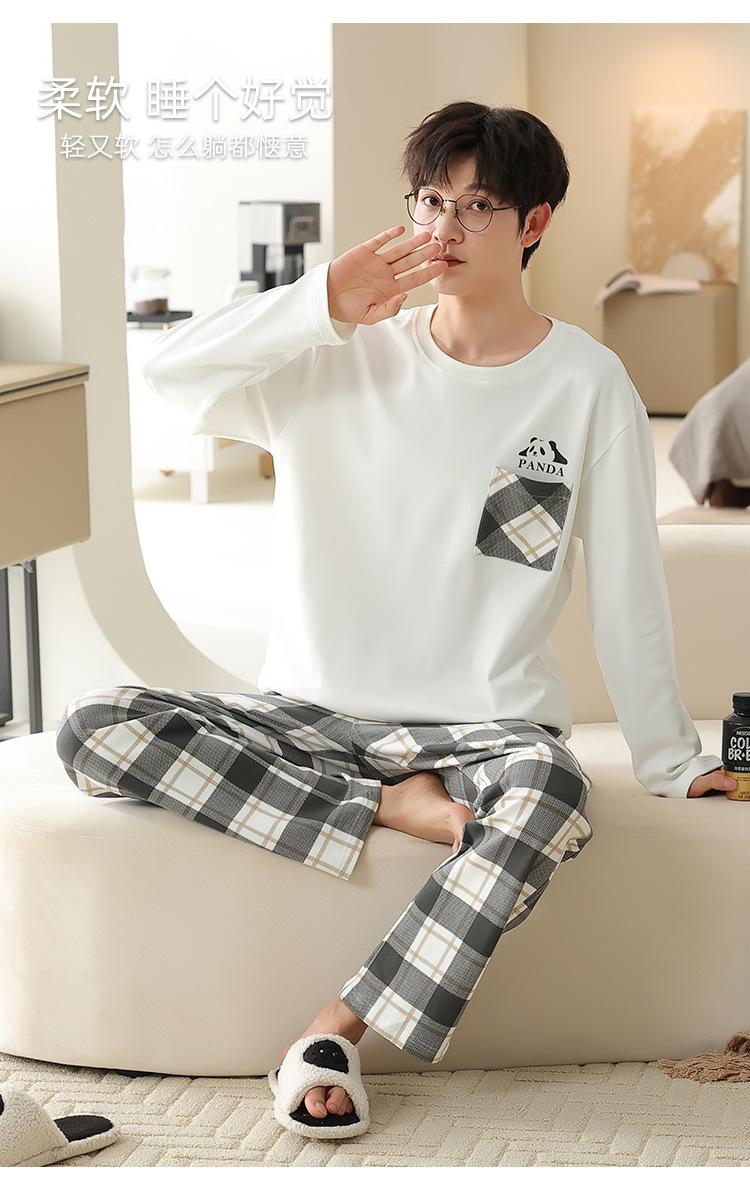 Pijamas de algodón para hombre, primavera y otoño, manga larga, cómodos, informales, para jóvenes, tallas grandes, para uso exterior, jersey, ropa de casa, traje