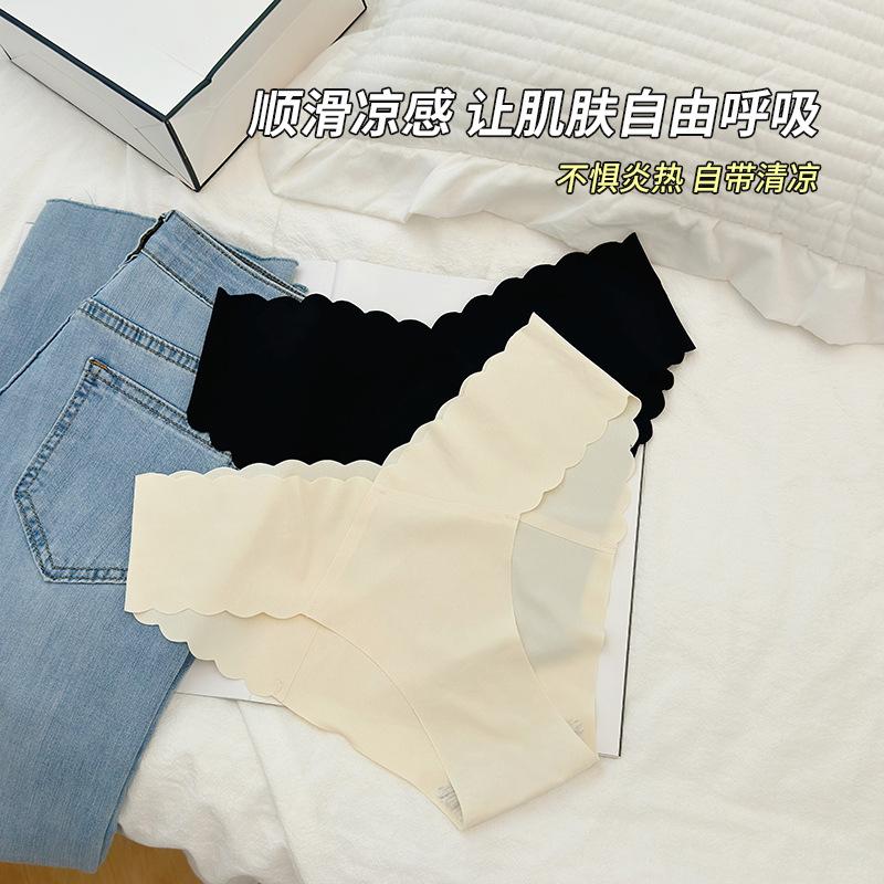 Ropa interior sin costuras para mujer, pantalones cortos triangulares de seda helada ultrafinos, de algodón puro para niña, con entrepierna antibacteriana y mascarilla sexy.