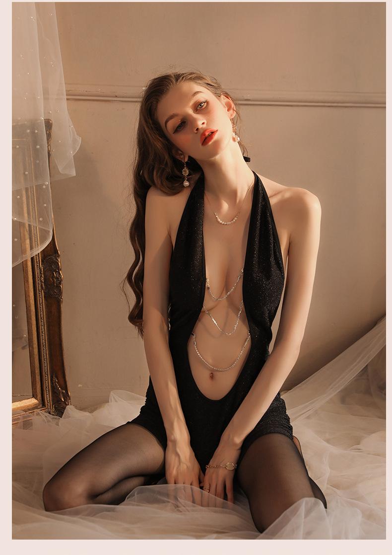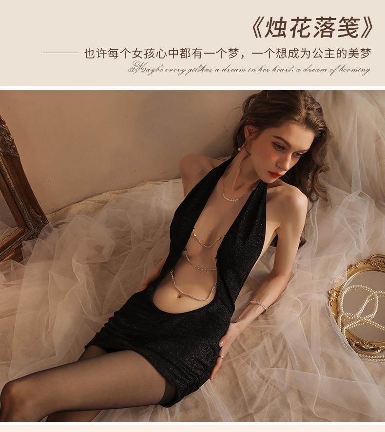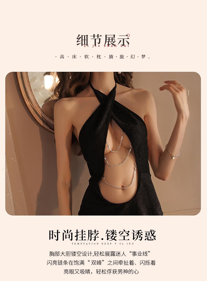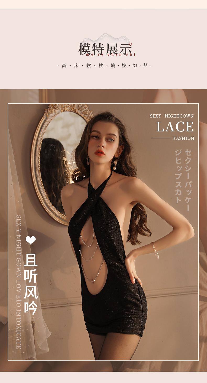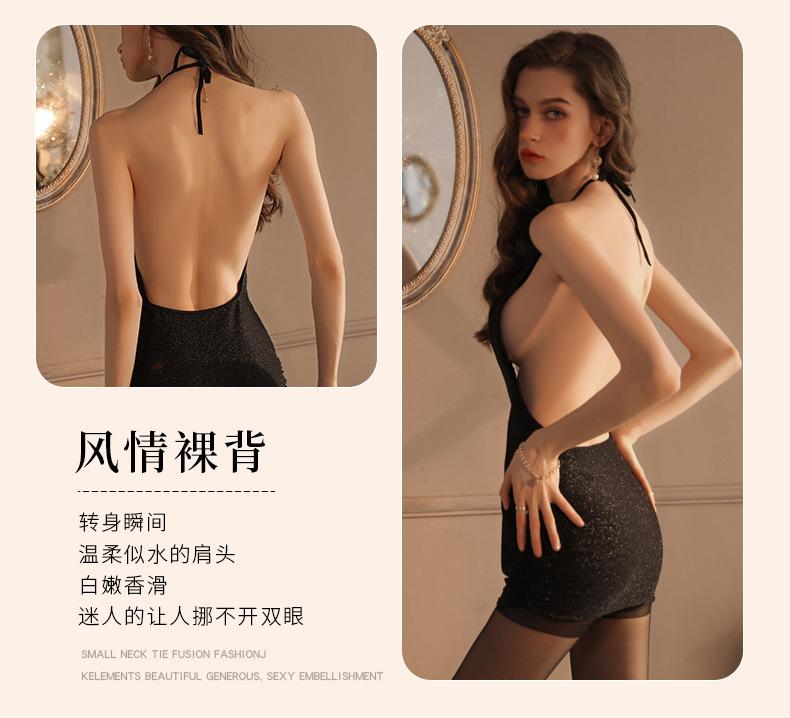 Compra Sopa nocturna talla grande ropa interior sexy espalda descubierta cadera hueca cuello halter con cordones traje de tentación de secretaria de club nocturno caliente al por mayor en Joom.pro