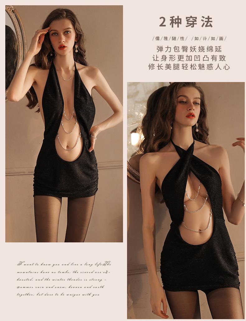 Sopa nocturna talla grande ropa interior sexy espalda descubierta cadera hueca cuello halter con cordones traje de tentación de secretaria de club nocturno caliente