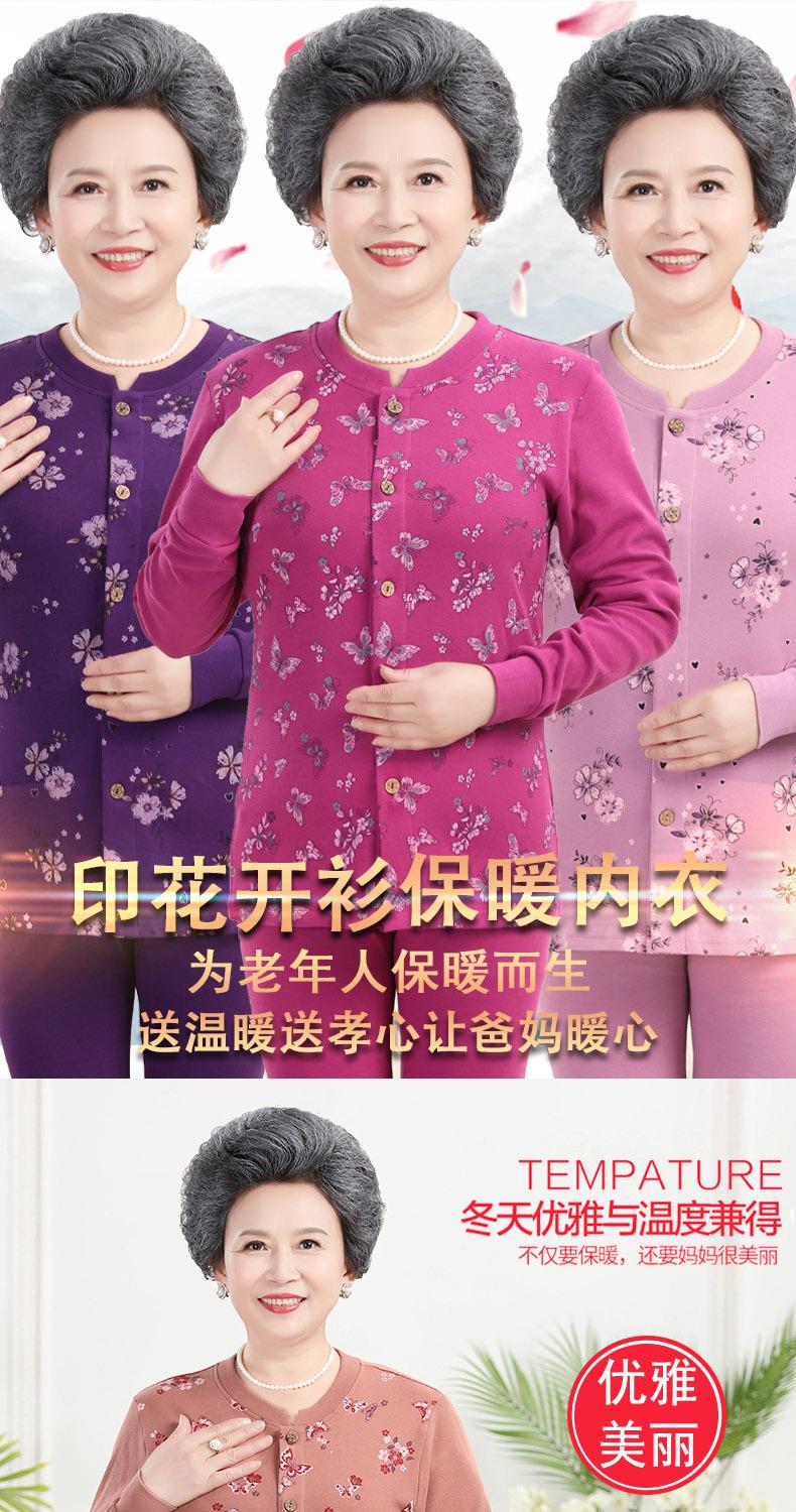 Ropa y pantalones de otoño de algodón puro para personas mayores, ropa interior térmica de algodón para mujer, cárdigan de abuela, ropa interior básica para madre